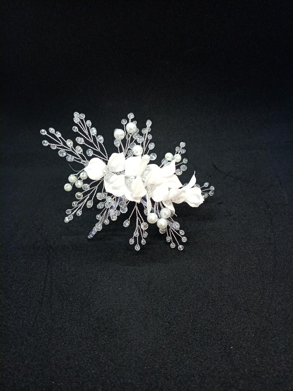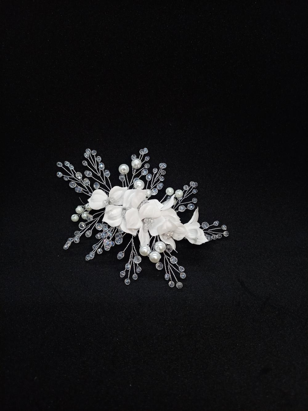 Düğününüzde size sıklık katacak küçük çiçek detaylı etrafı beyaz inci ve yaprak desenli kristallerden oluşan gelin tokasını düğünlük sayfası olarak müşterilerimize sunmaktayız.