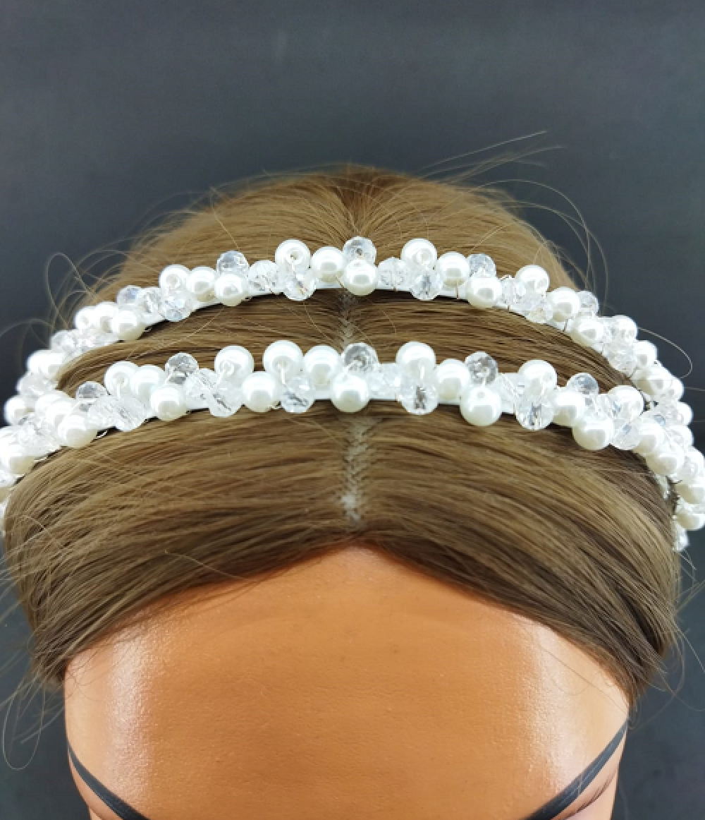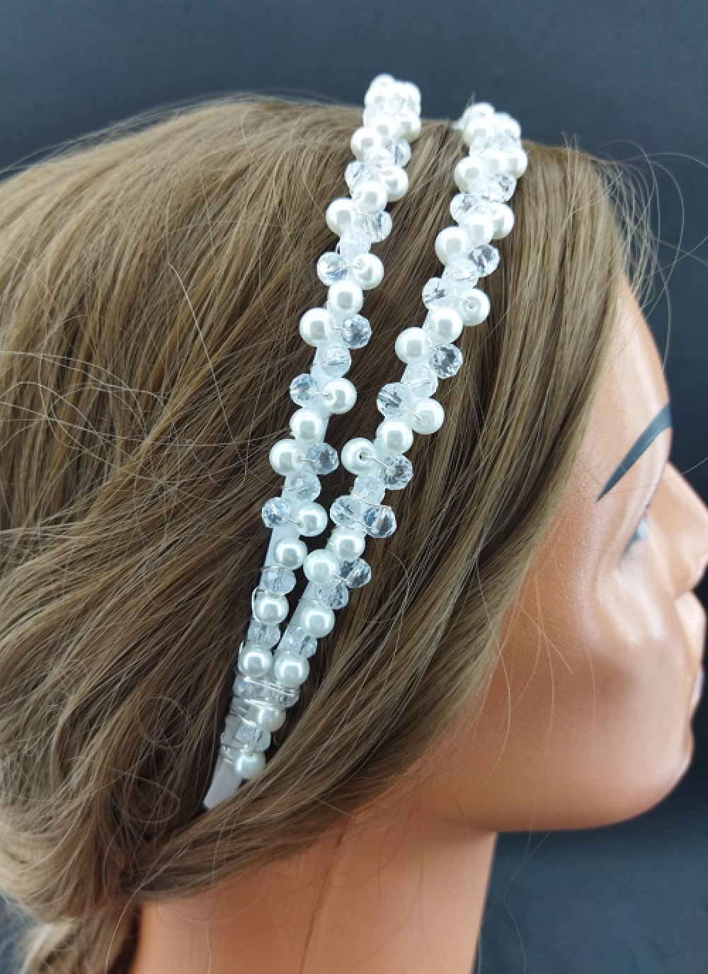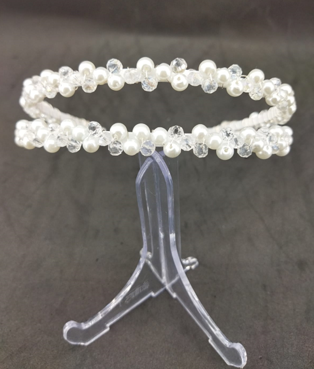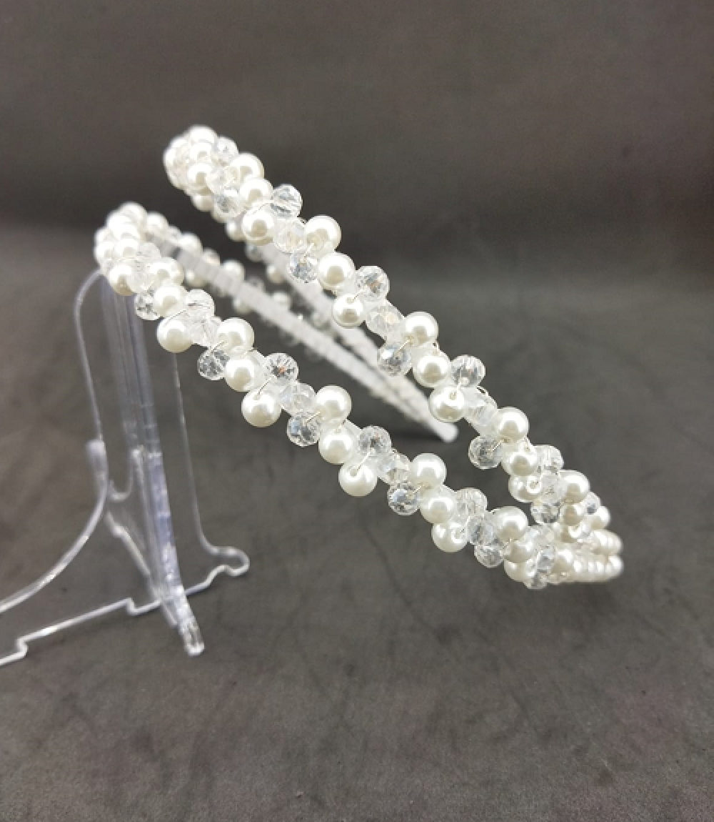 Top İnci Ve Kristallerle Oluşturulmuş Gelin Tacı