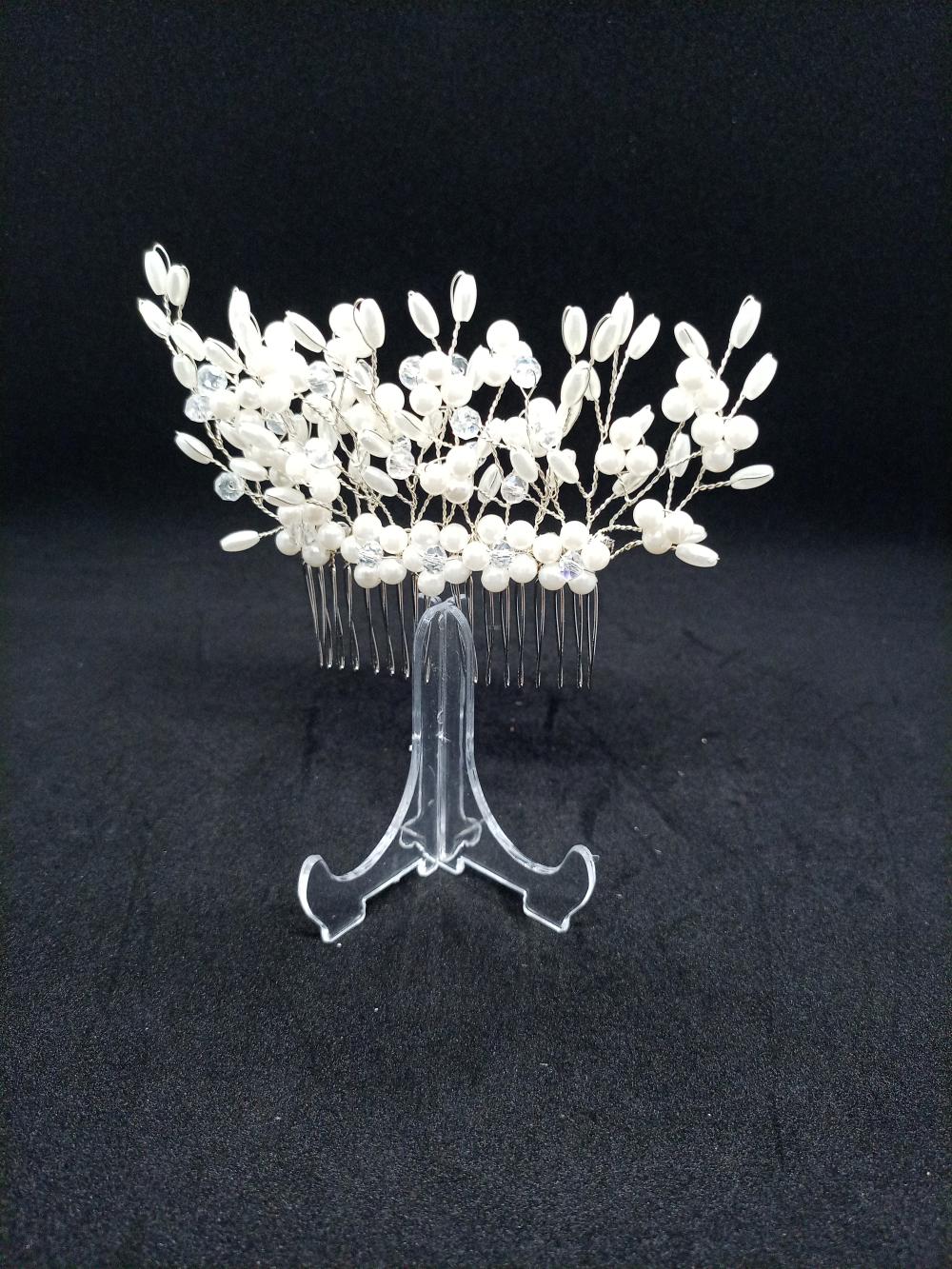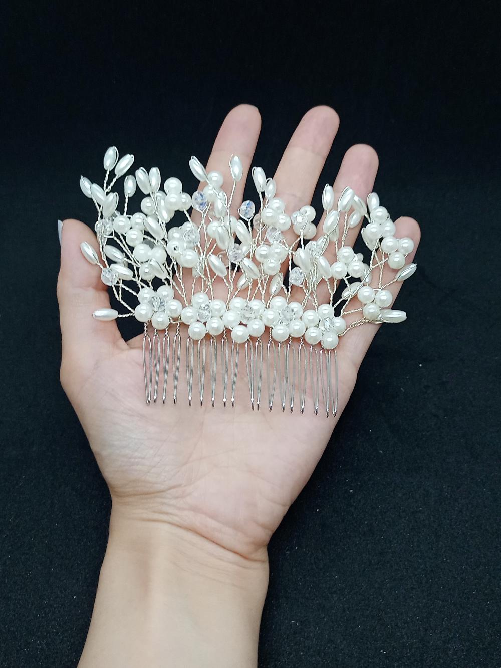 Top İnci Ve Uzun İncilerden Oluşan Gelin Tokası