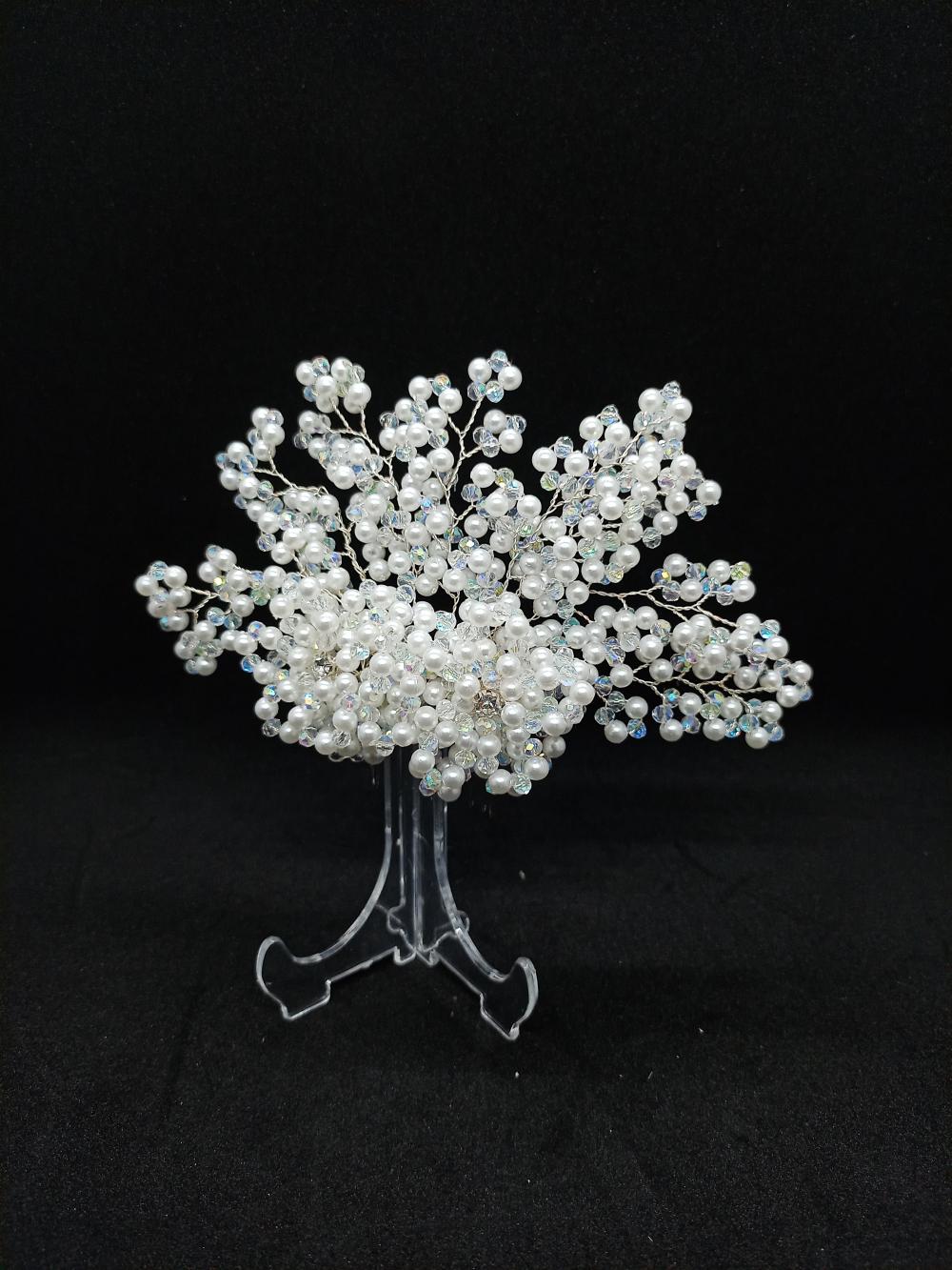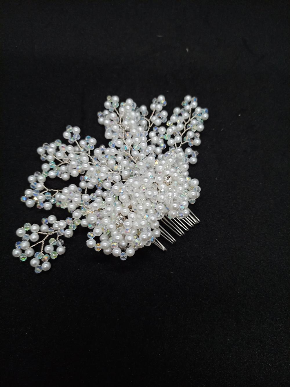 Top İncilerden Ve Parlak Kristallerden Oluşan Gelin Tokası