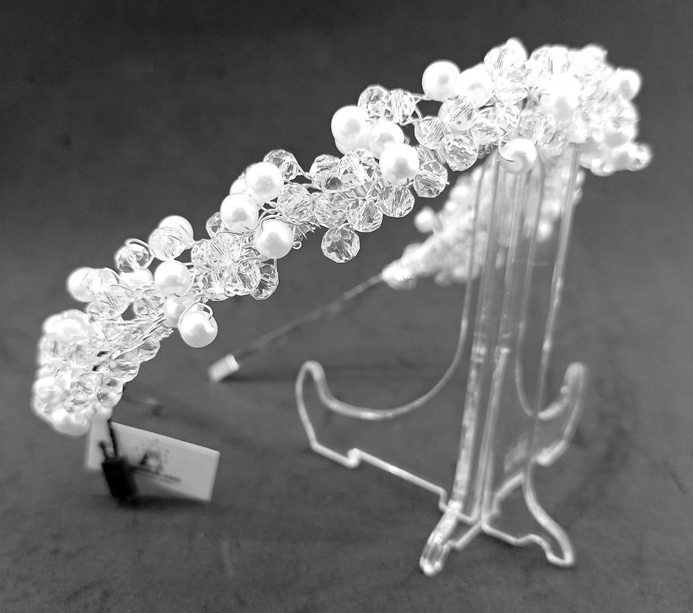 Top Kristaller Ve İncilerden Oluşan Gelin Tacı