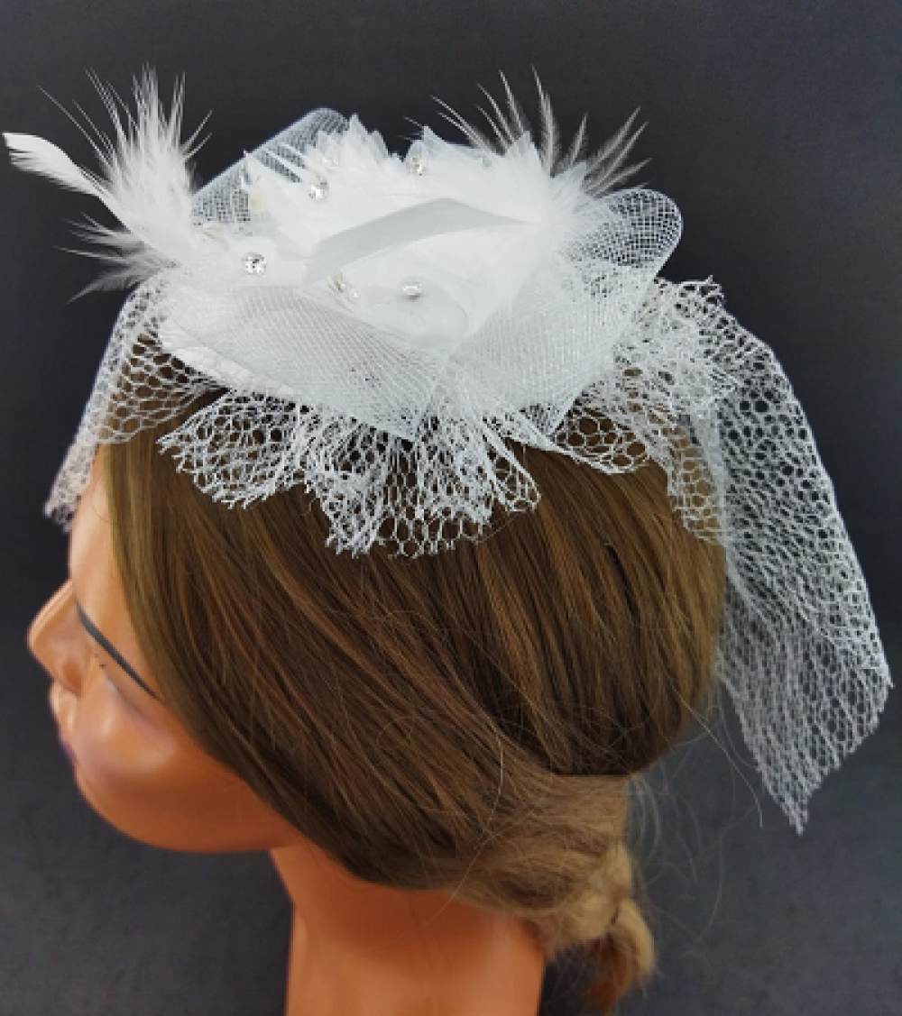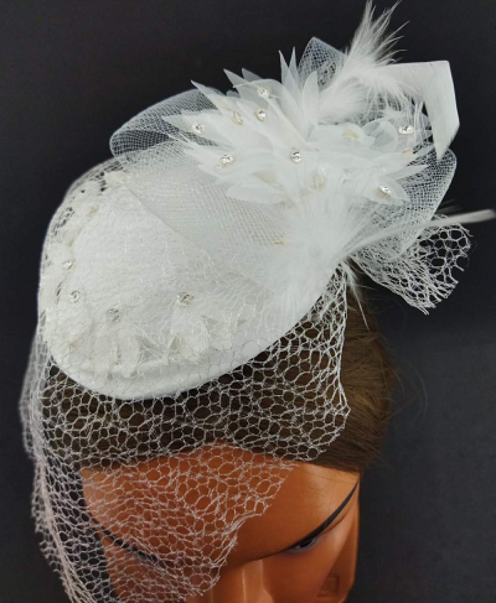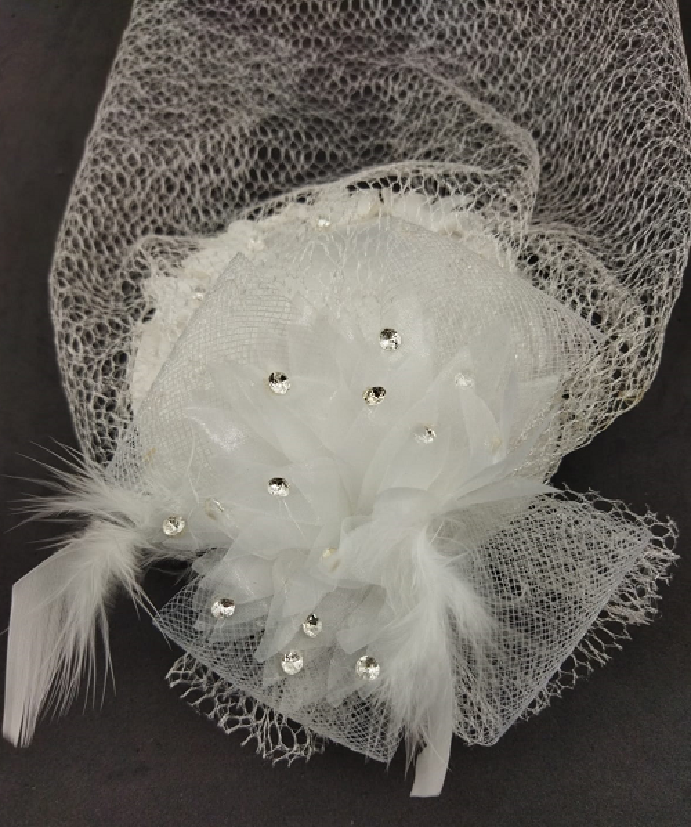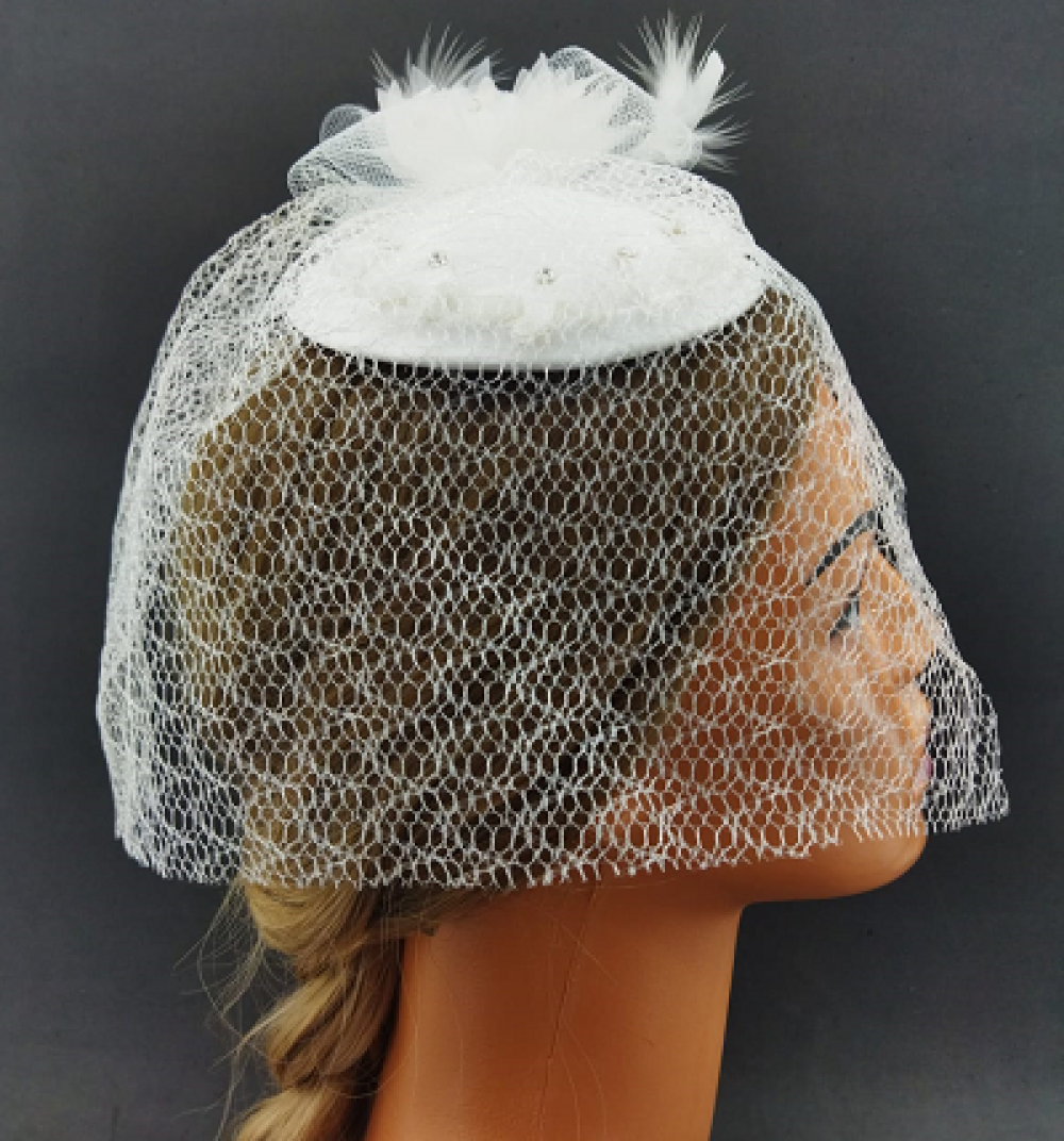 Tül Çiçekten Oluşan Taş Detaylı Beyaz Vualet Şapka Nikah Kepi