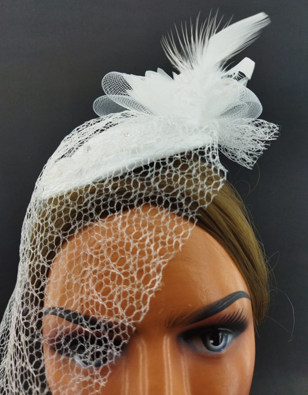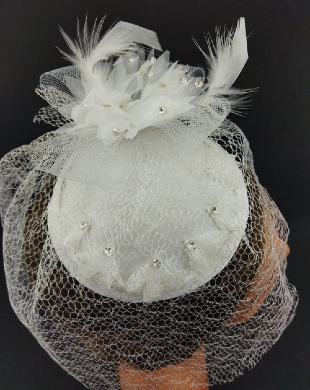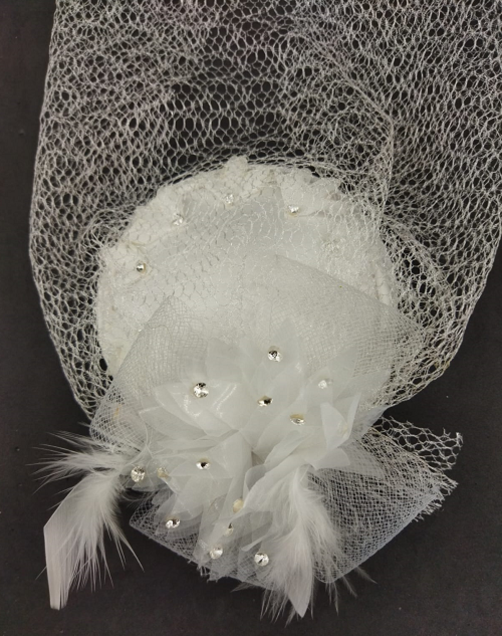Tül Çiçekten Oluşan Taş Detaylı Beyaz Vualet Şapka Nikah Kepi