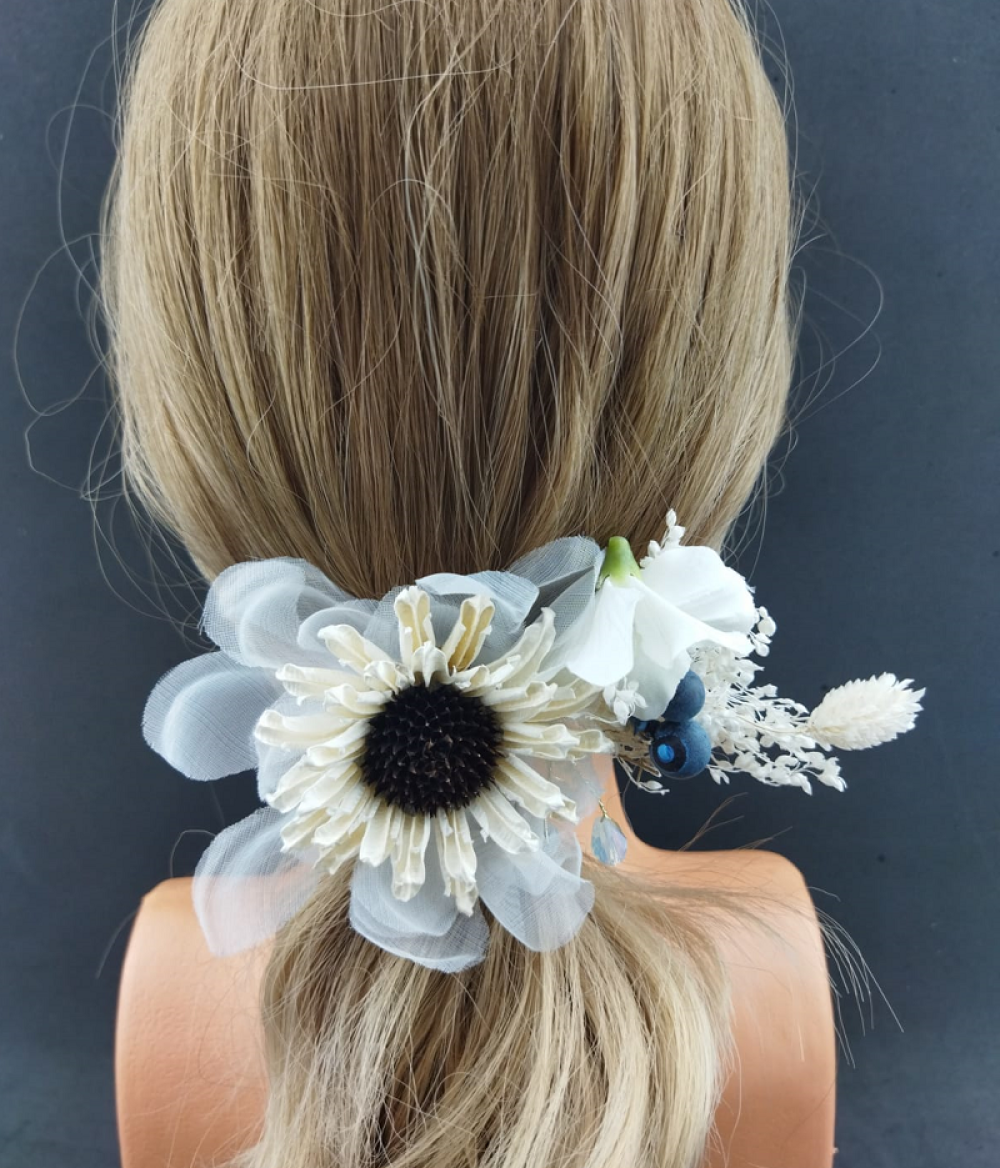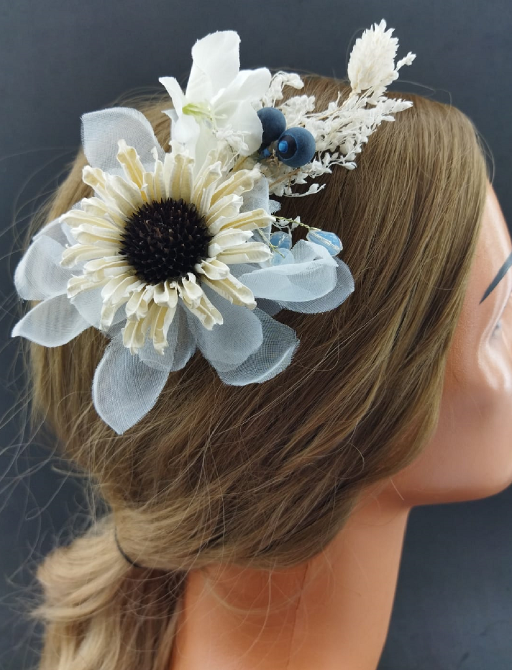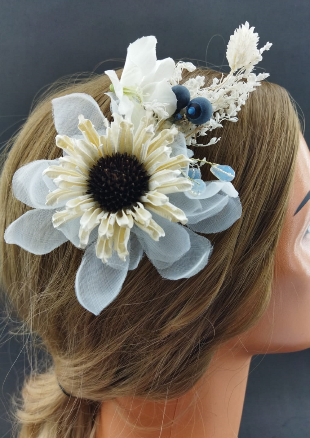 Tül Ve Kristal Detaylı Günebakan Gelin Tokası