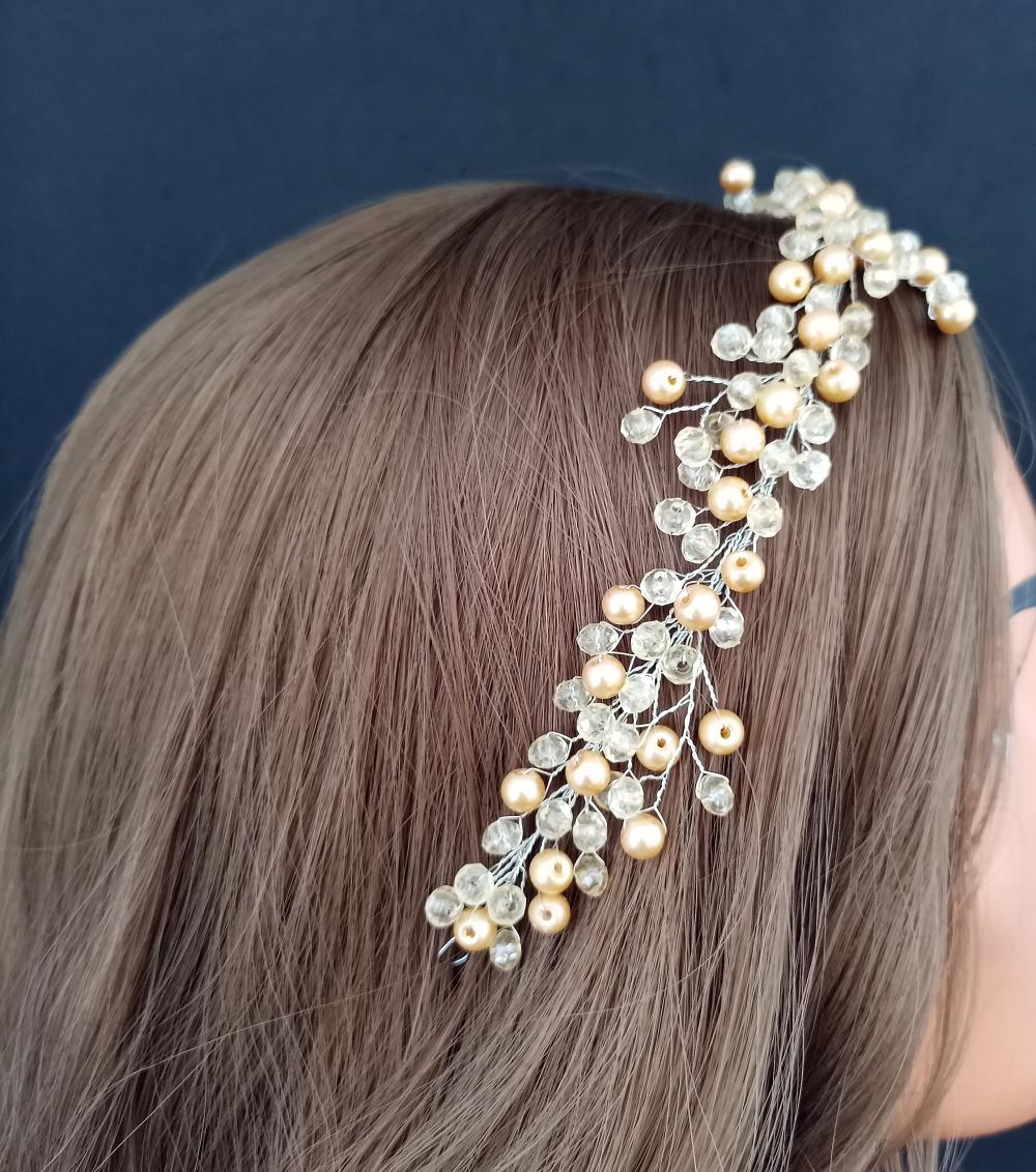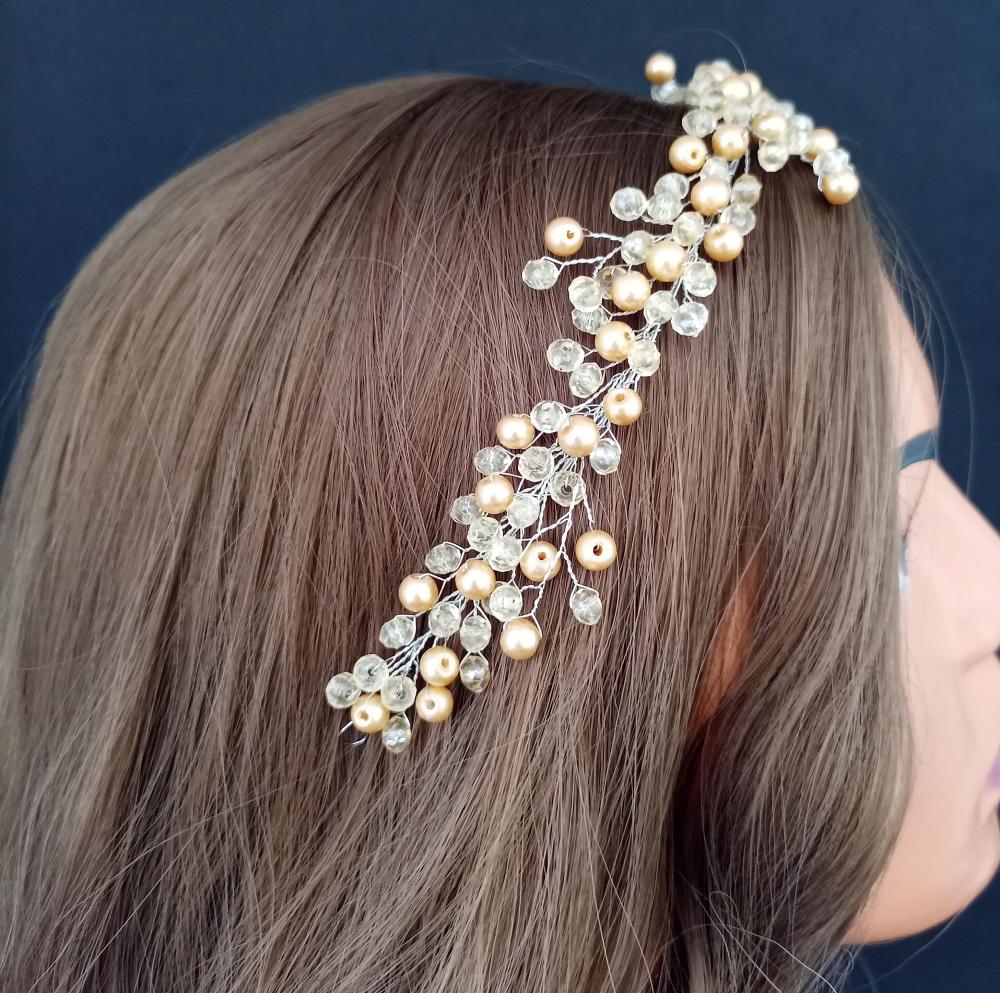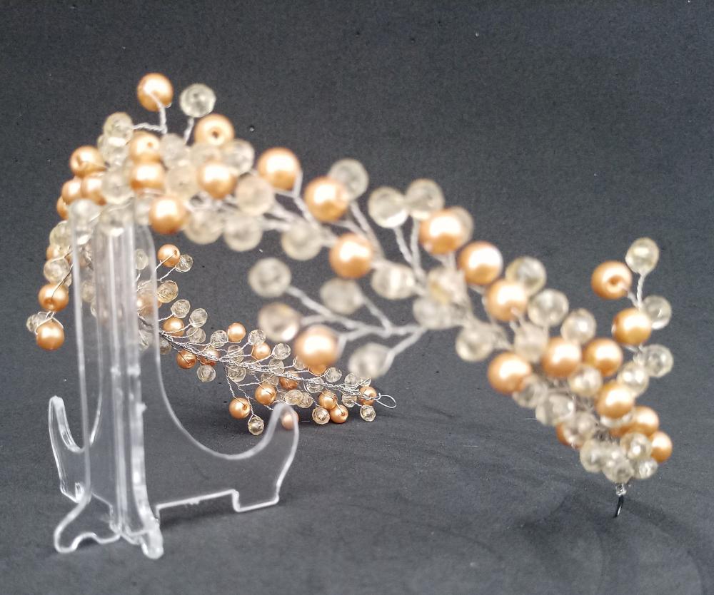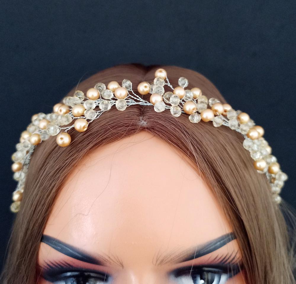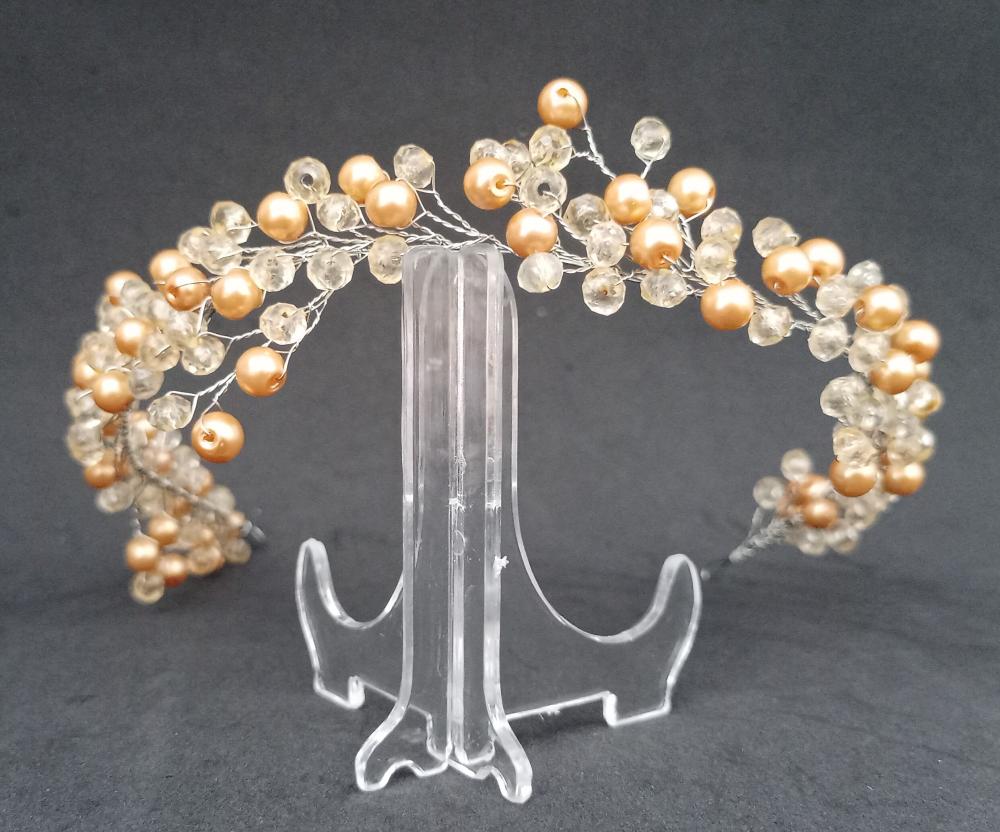 Turuncu İnci Ve Kristallerden Oluşan Gelin Tacı