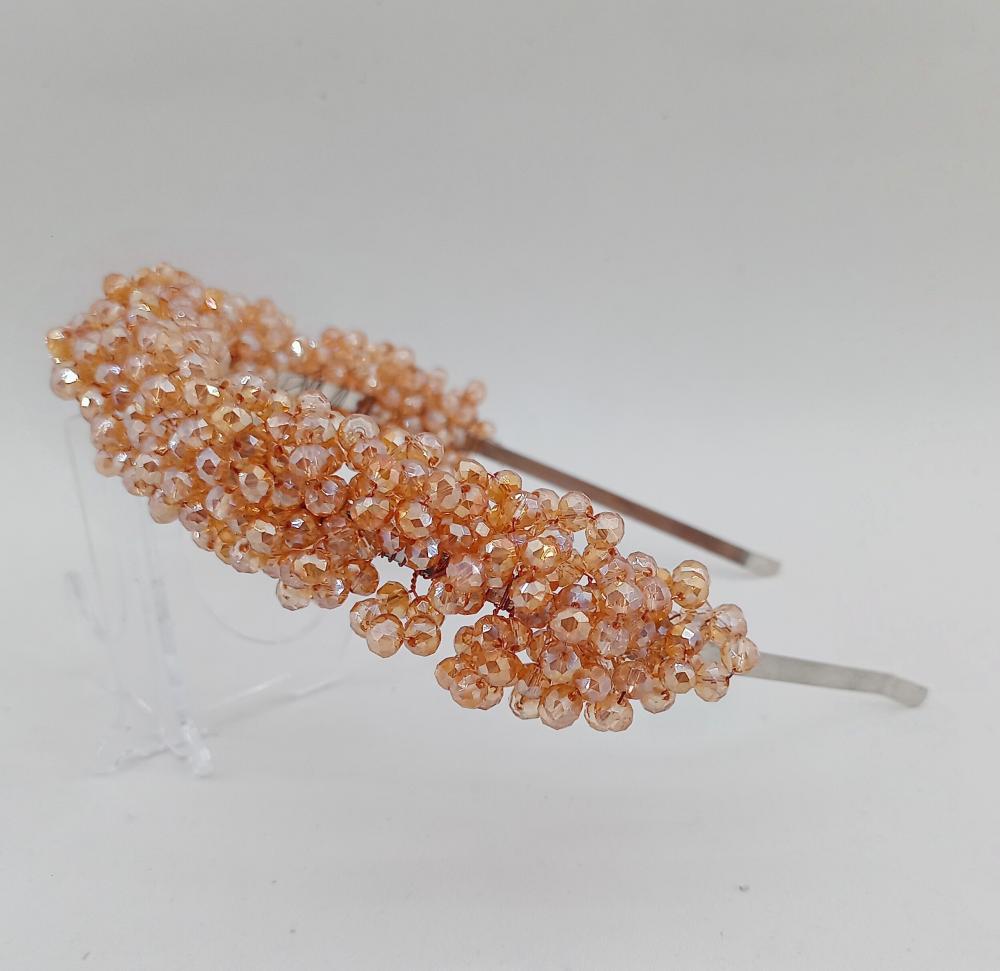 Turuncu Top Kristallerle Süslenmiş Gelin Tacı