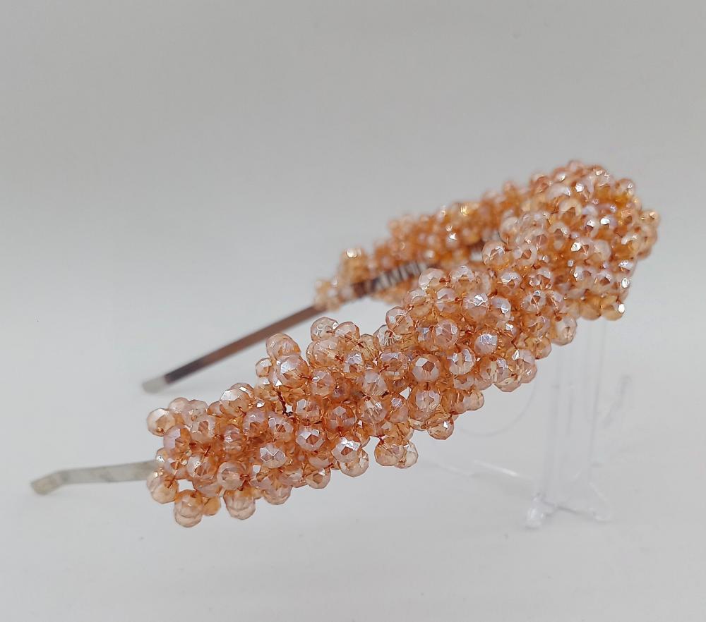 Bakır Gold Top Kristallerle Süslenmiş Gelin Tacı