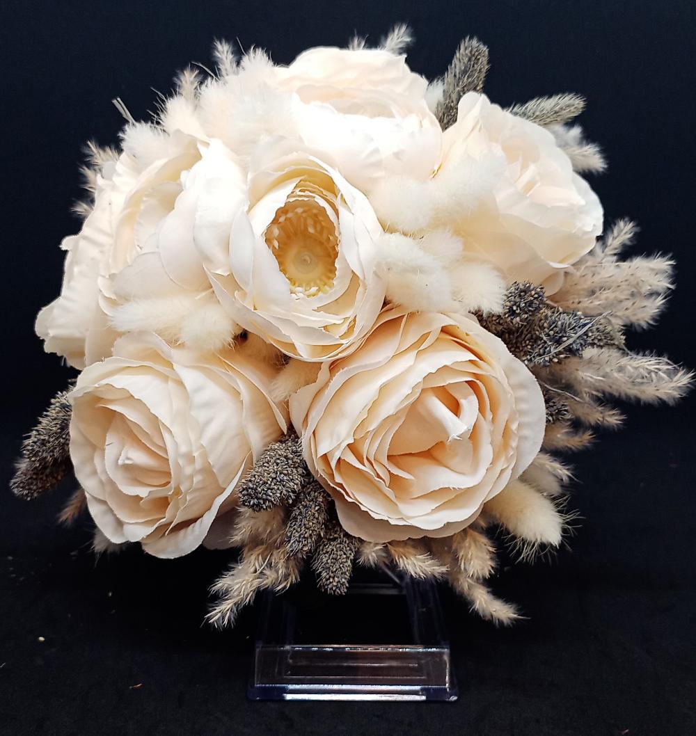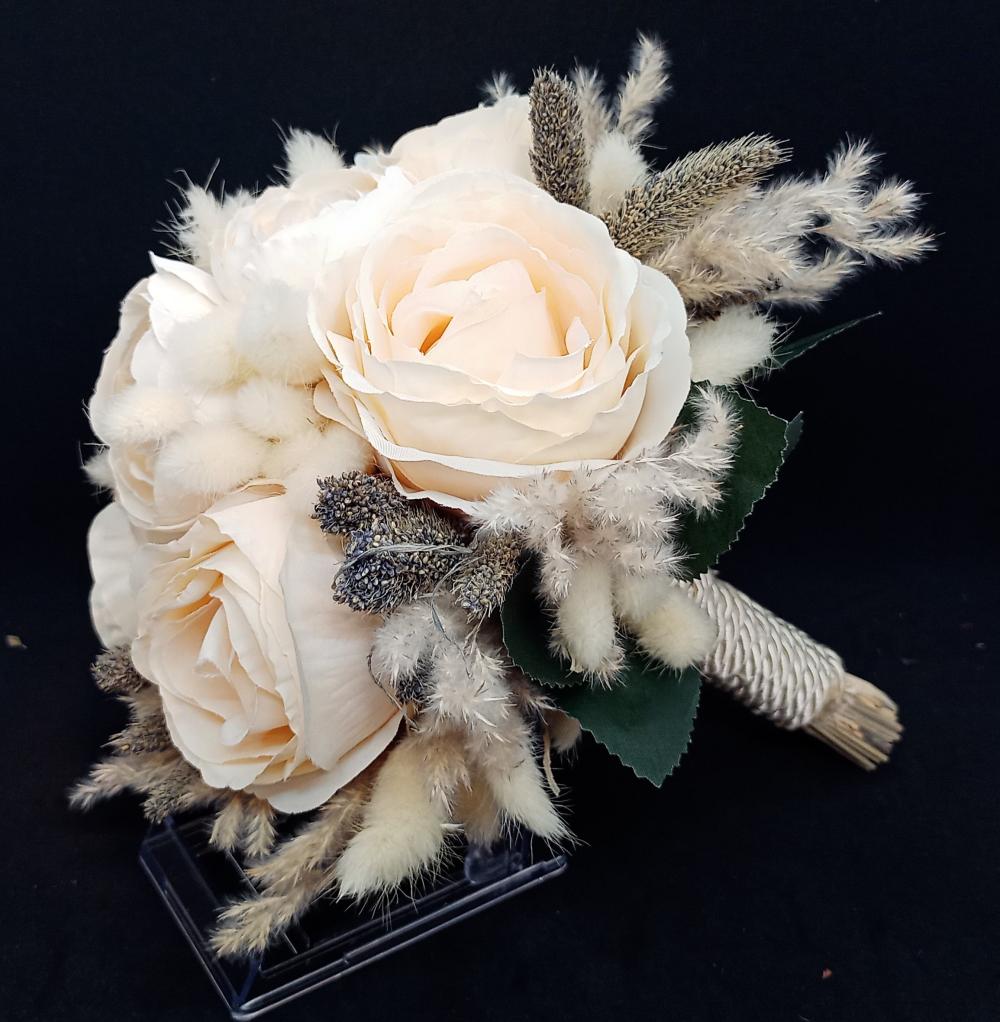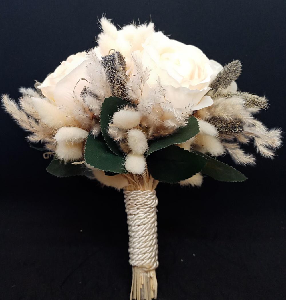 Tüy Ve Tavşan Kuyruğu Otu Detaylı Sahip Beyaz Gül Gelin Buketi