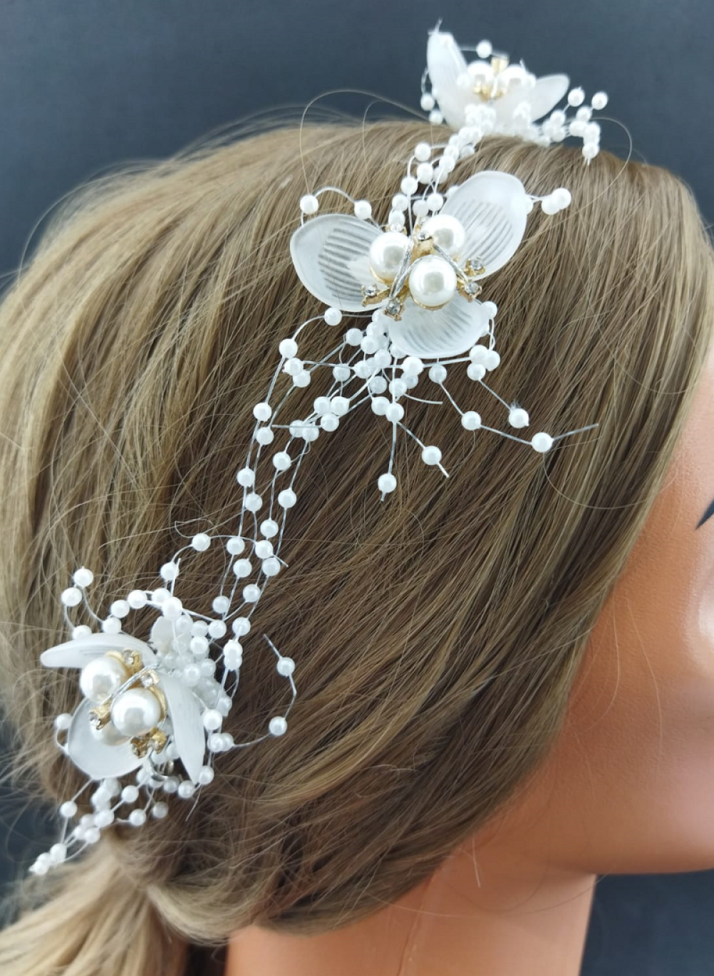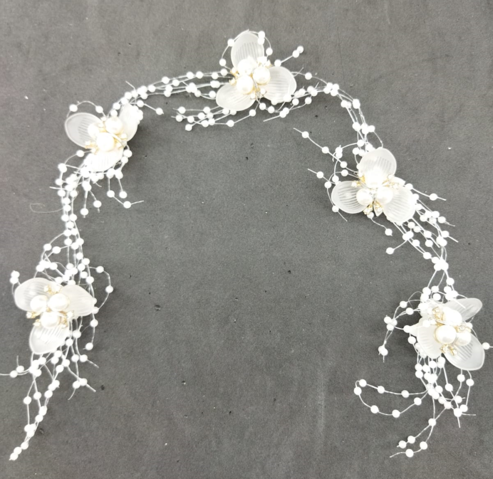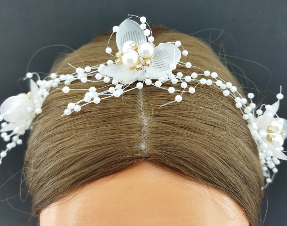 Üç Yapraklı Yonca Görünümlü İnci Detayları Olan Gelin Tacı