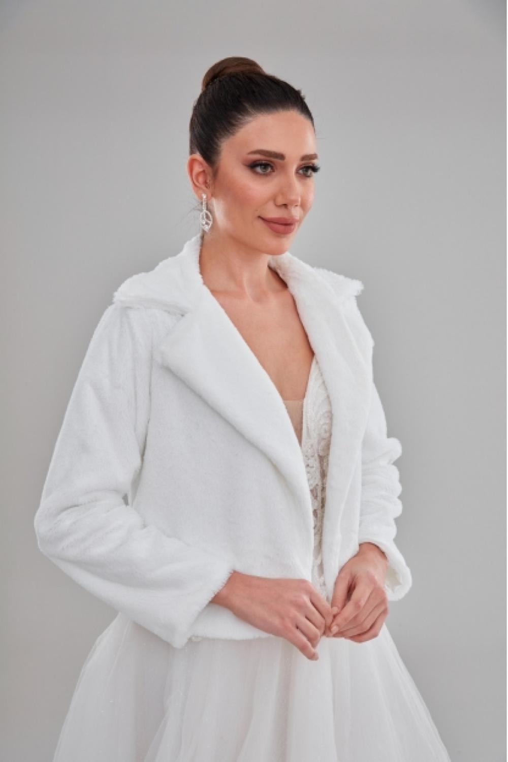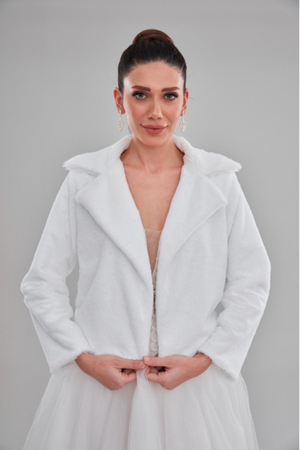 Uzun Beyaz Çift Yaka Gelin Etol Kürk Bolero
