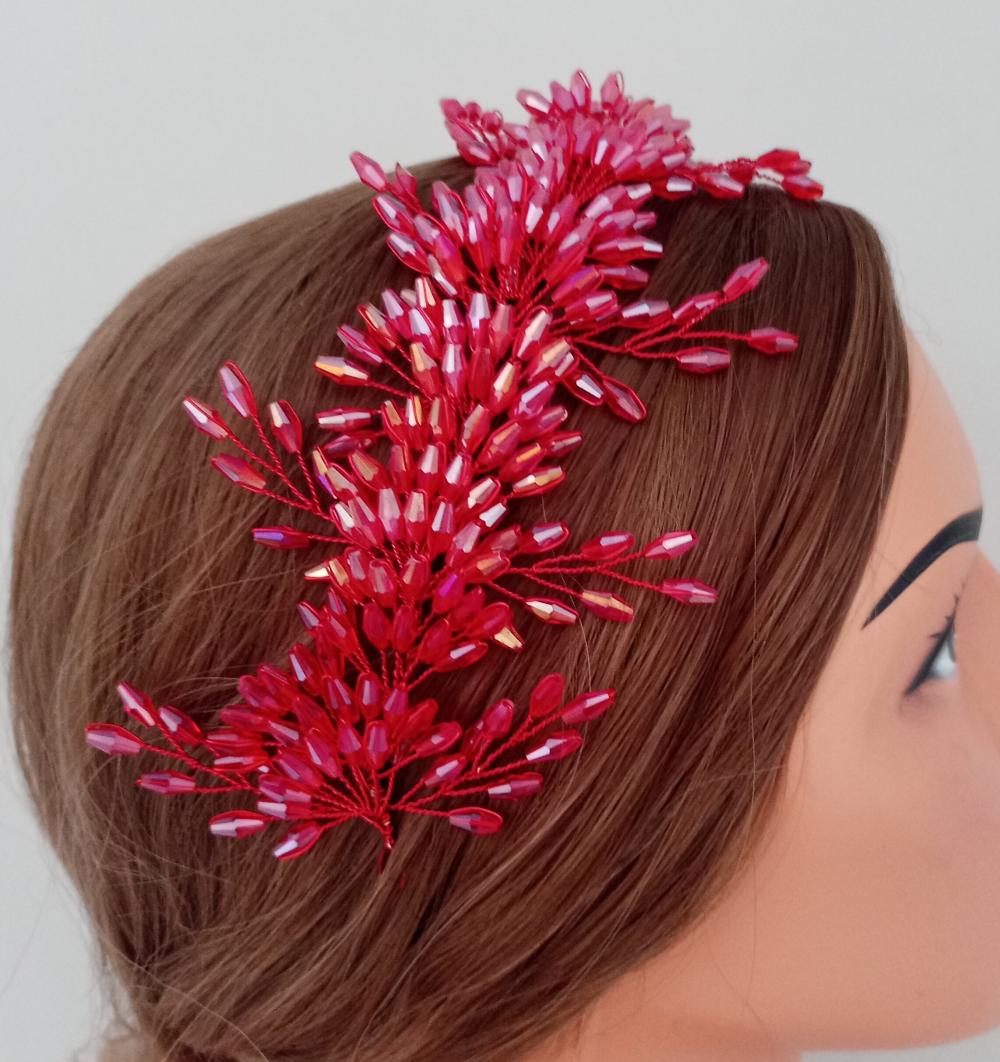 Uzun Kırmızı Kristallerden Oluşan Kına Tacı