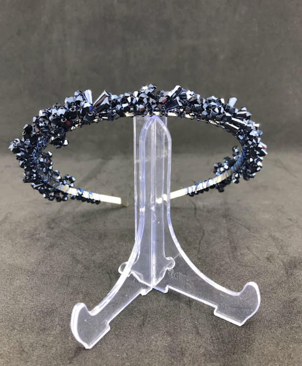 Uzun Ve Top Kristallerle Süslenmiş Lacivert Kına Tacı