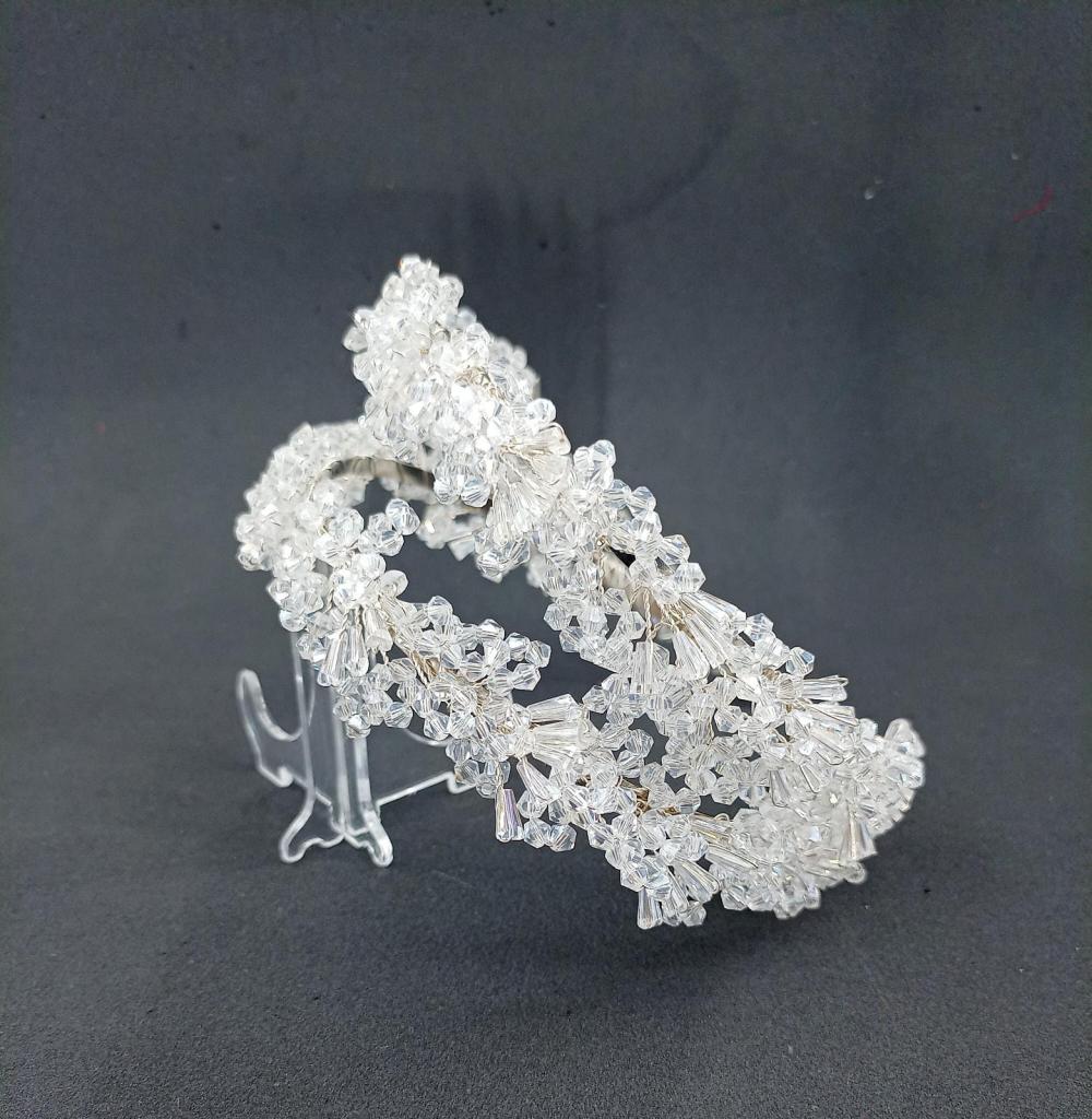 Uzun Ve Top Kristallerle Süslenmiş Şeffaf Gelin Tacı