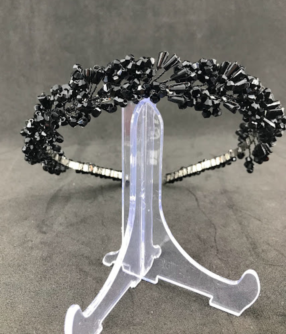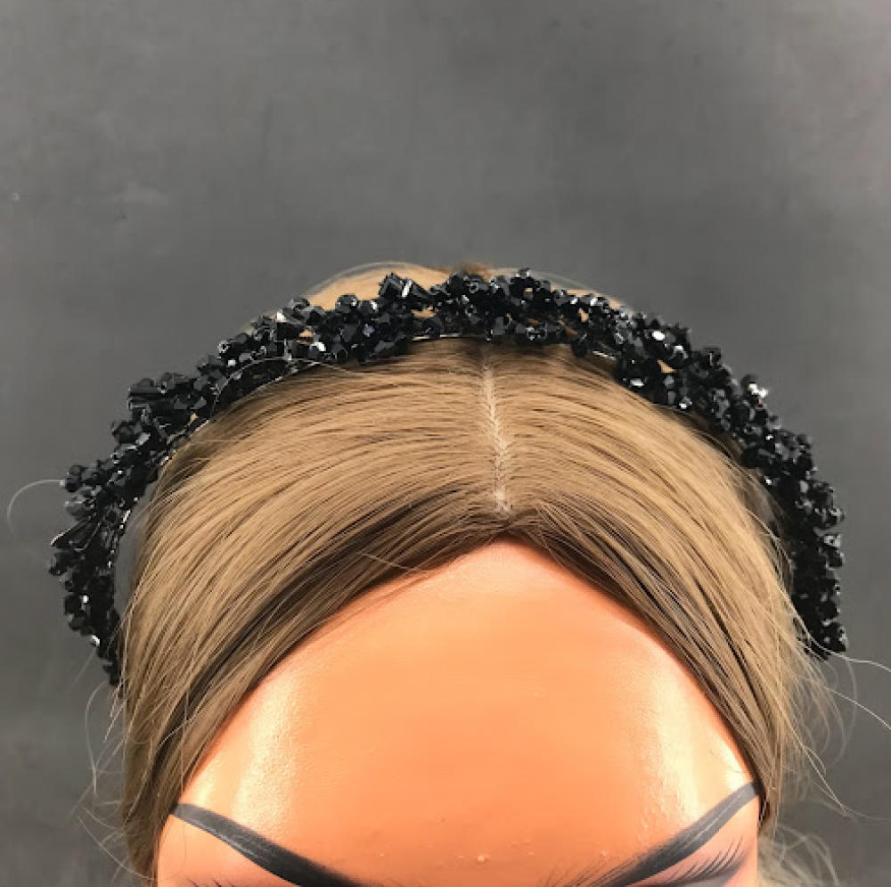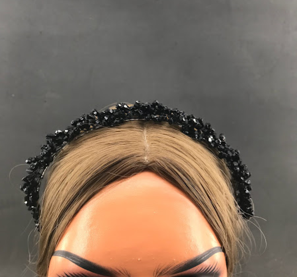 Uzun Ve Top Kristallerle Süslenmiş Siyah Kına Tacı