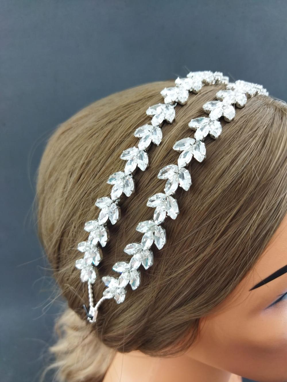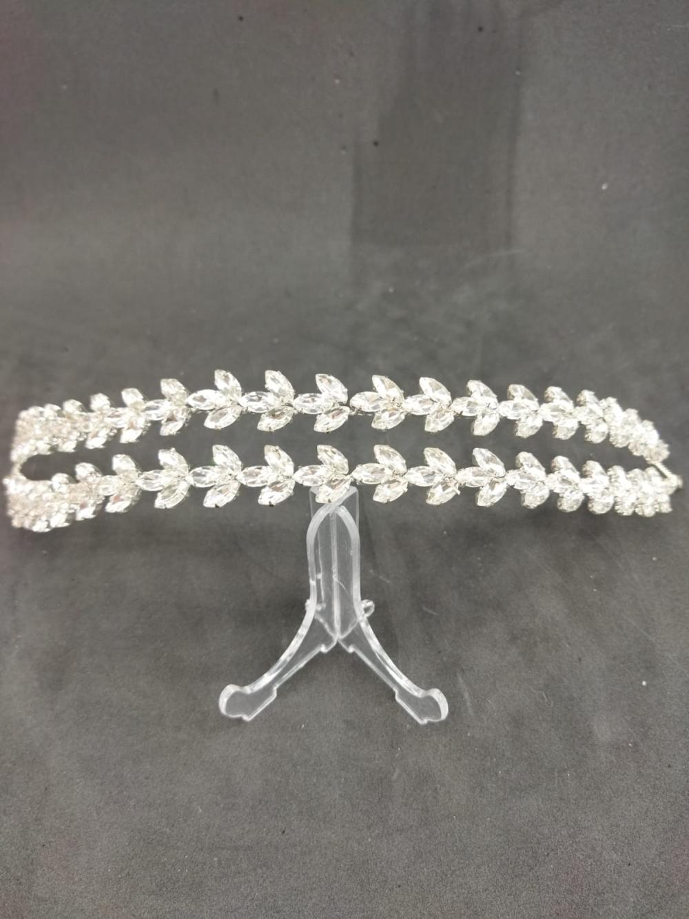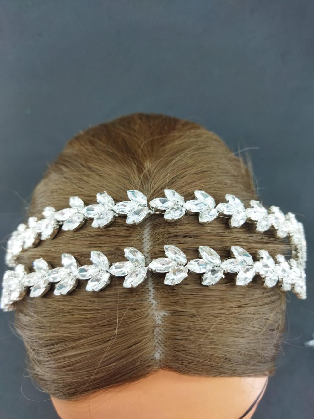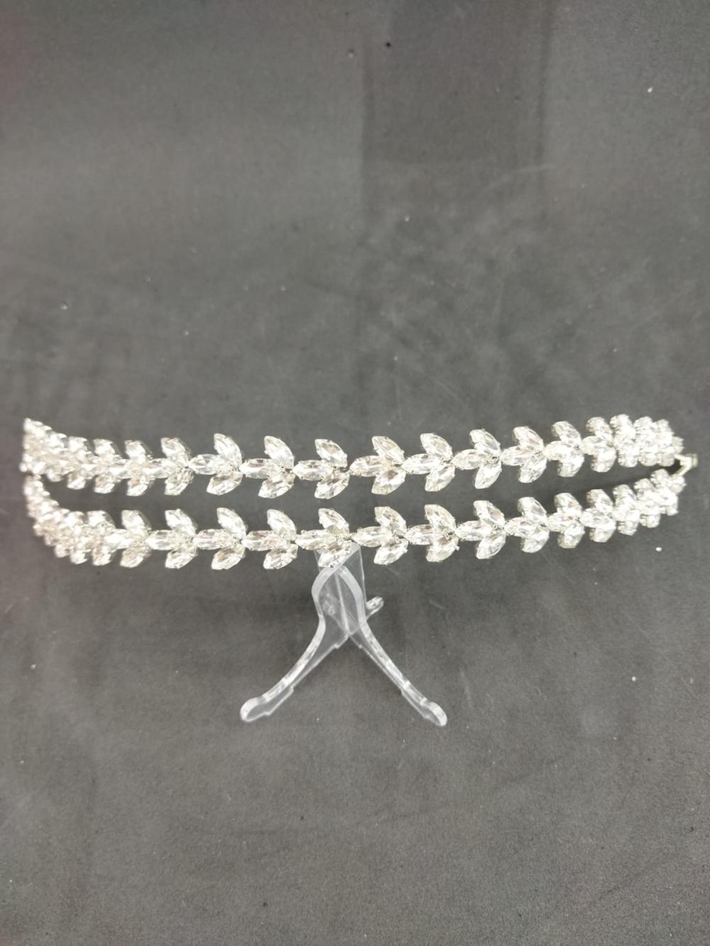 Uzun Yaprak Görünümlü Kristallerle Birleştirilmiş Sık Gelin Tacı