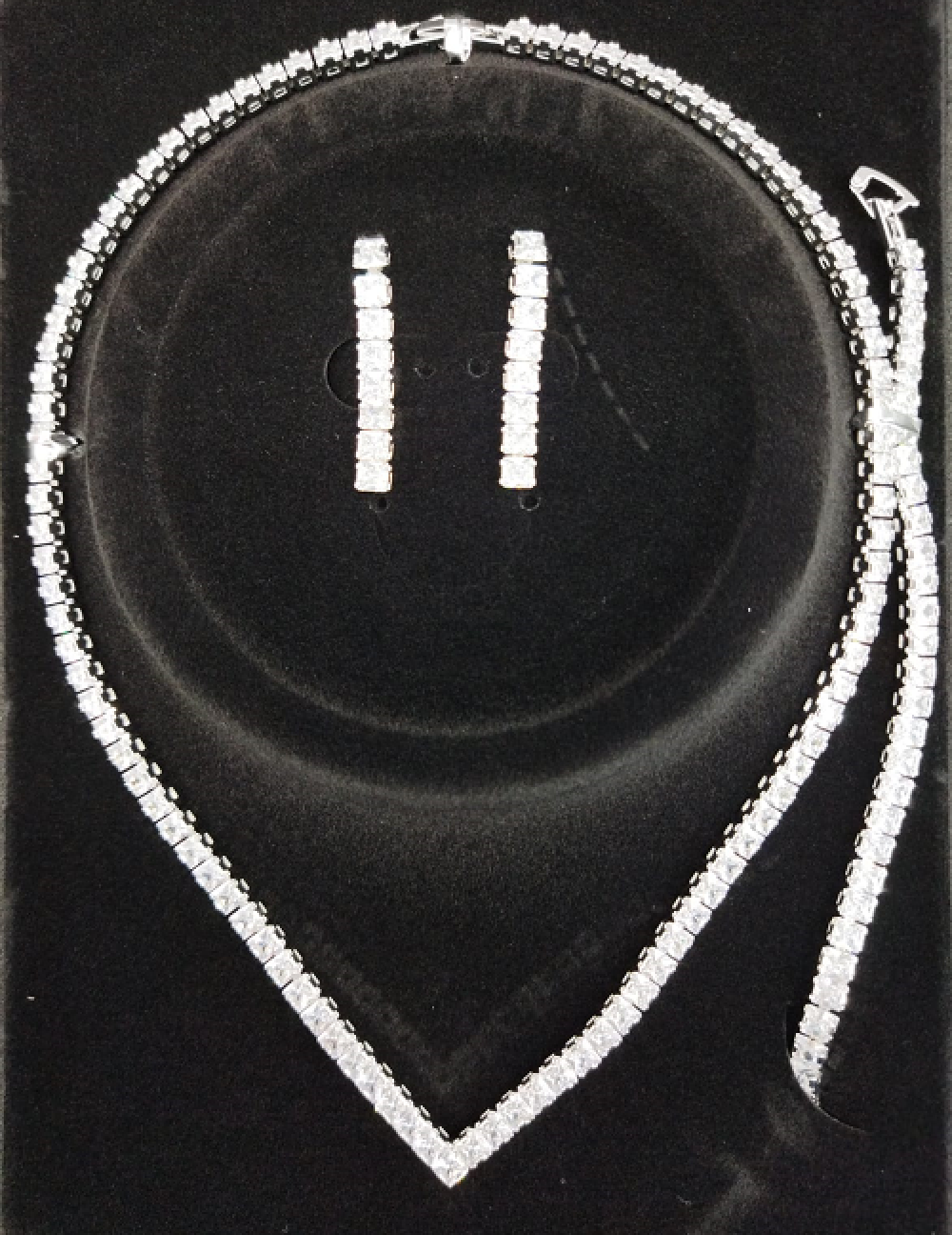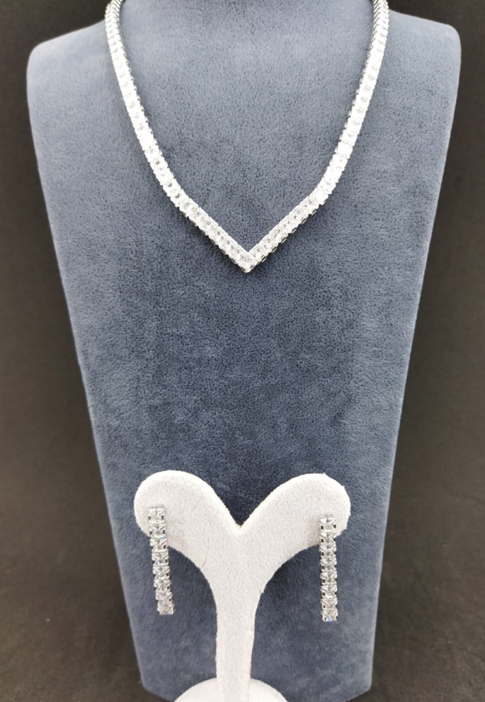 V Şeklinde Kalın Kristal Taşlı Su Yolu Takı Seti
