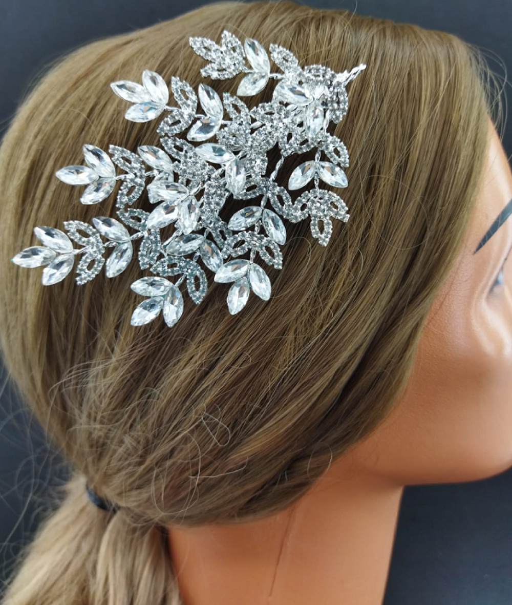 Yaprak Desenli Kristallerle Oluşturulmuş Gelin Tokası