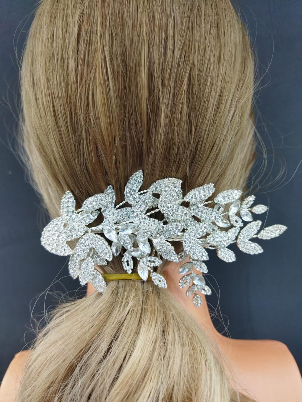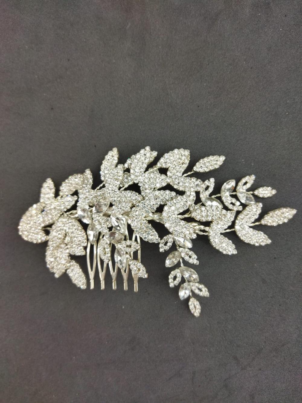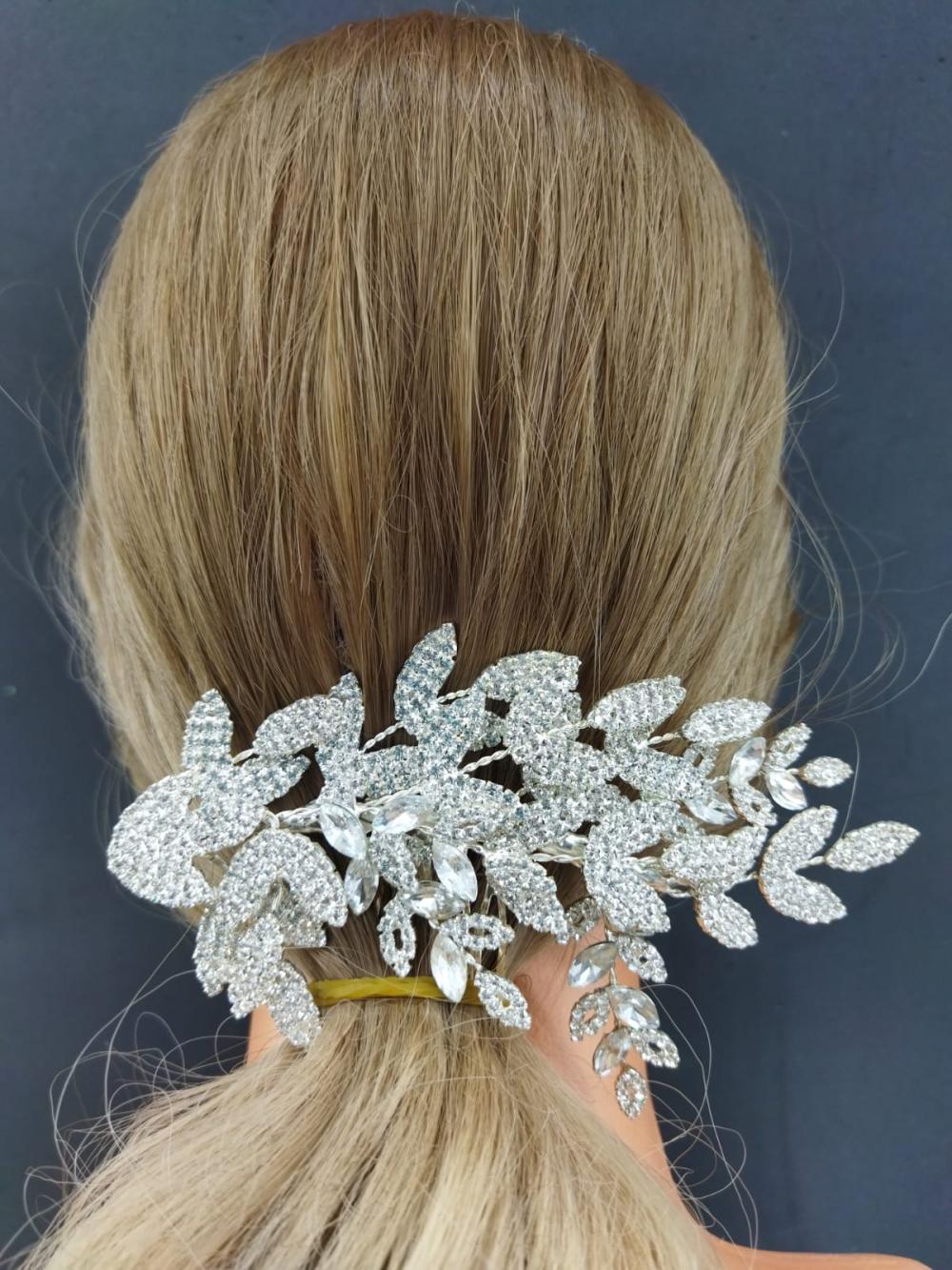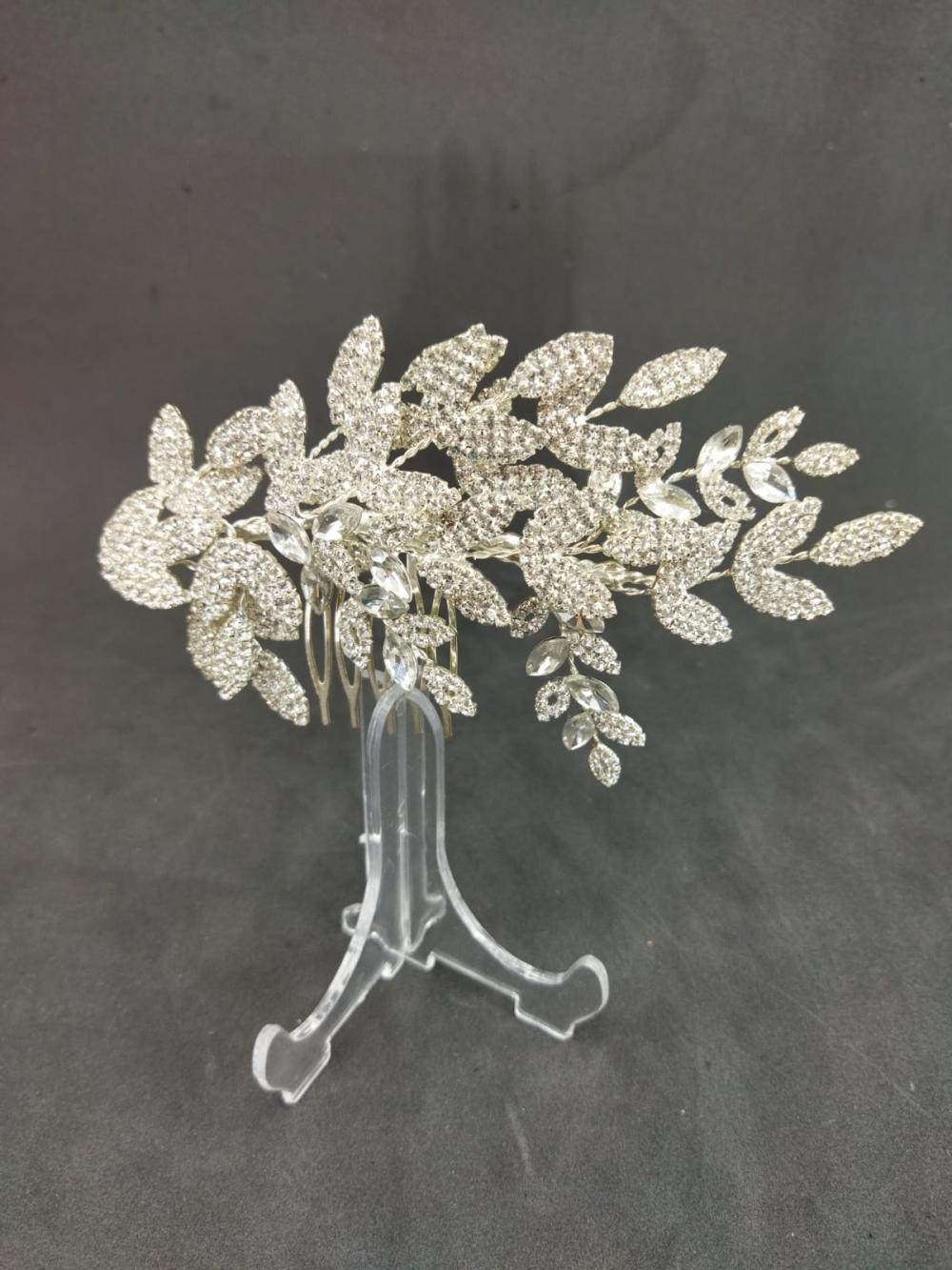 Yaprak Detaylı Kristal Taşlarla Süslenmiş Gelin Saç Tokası