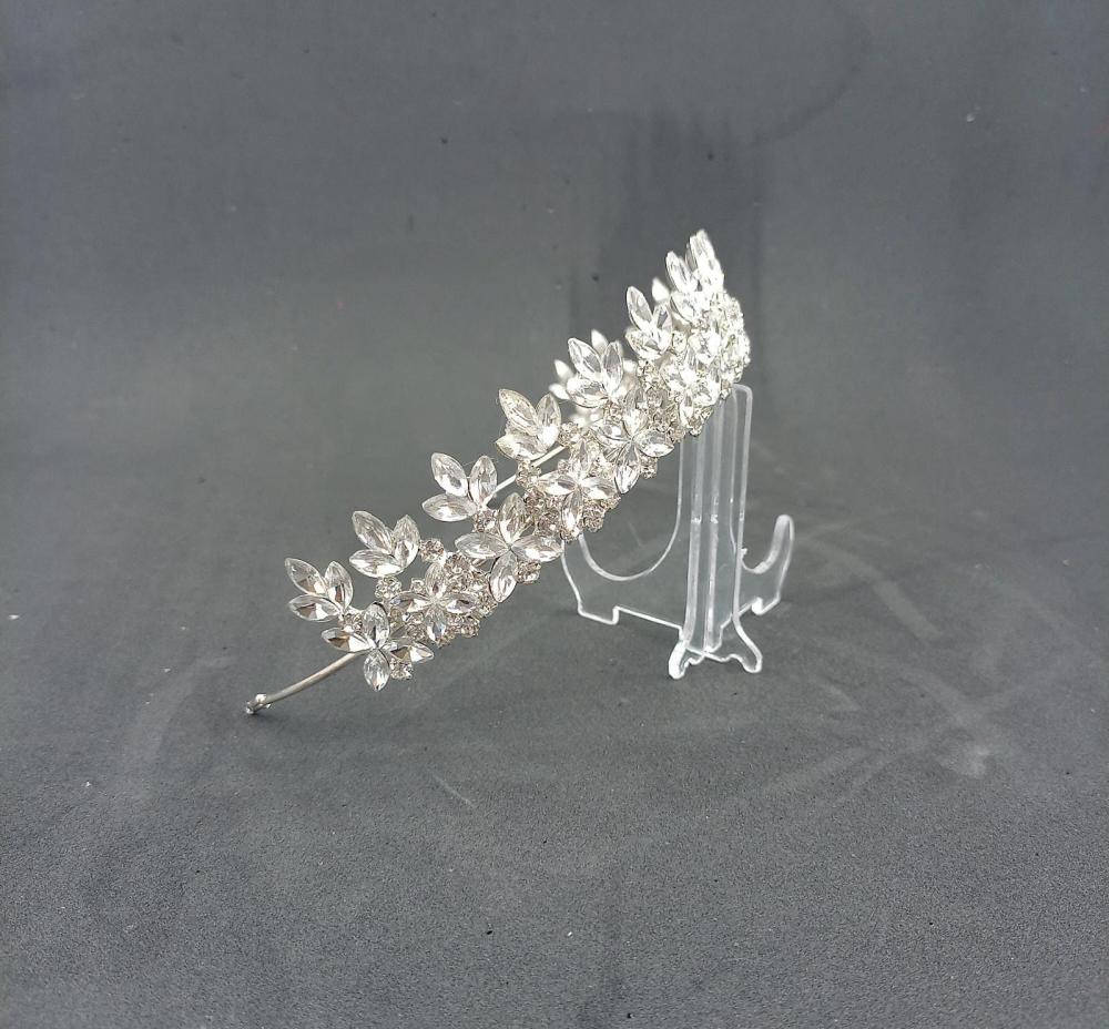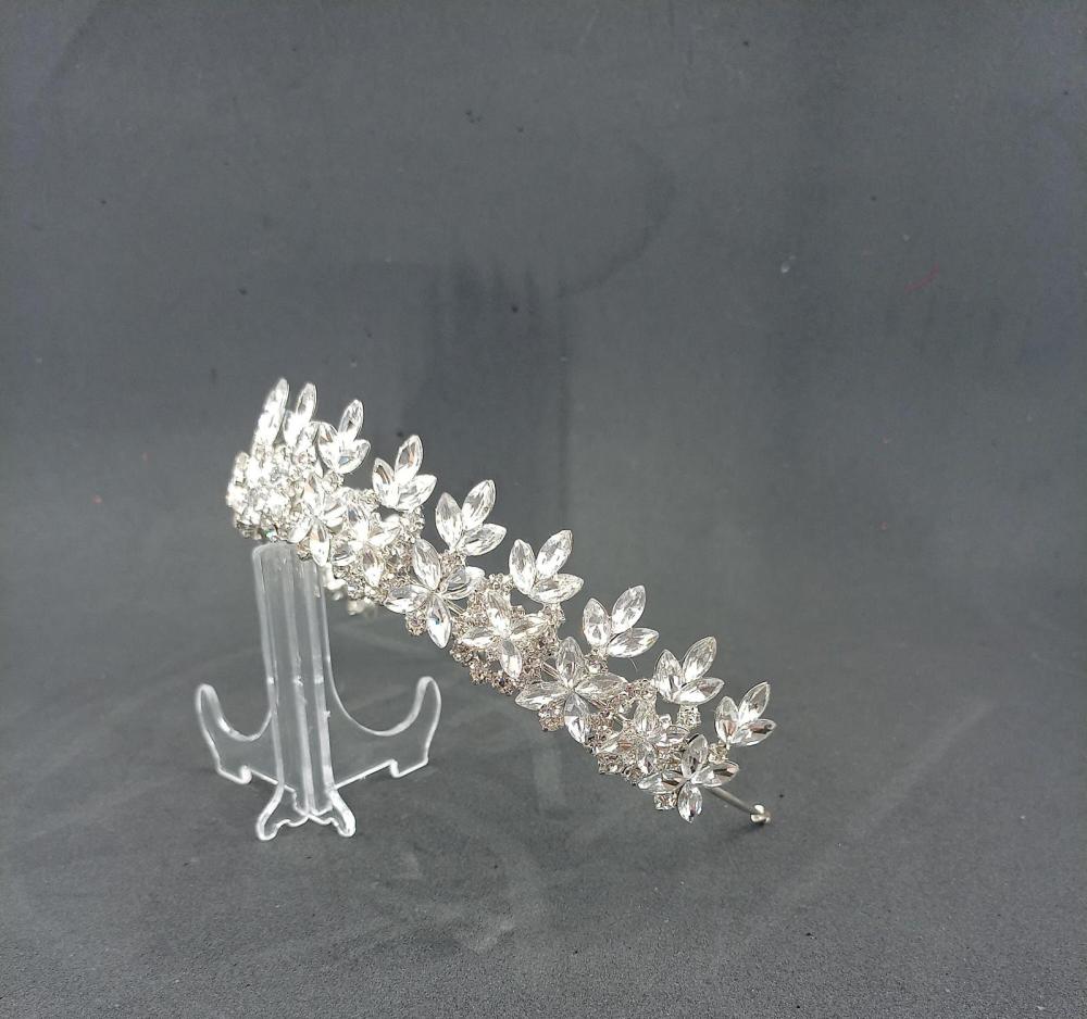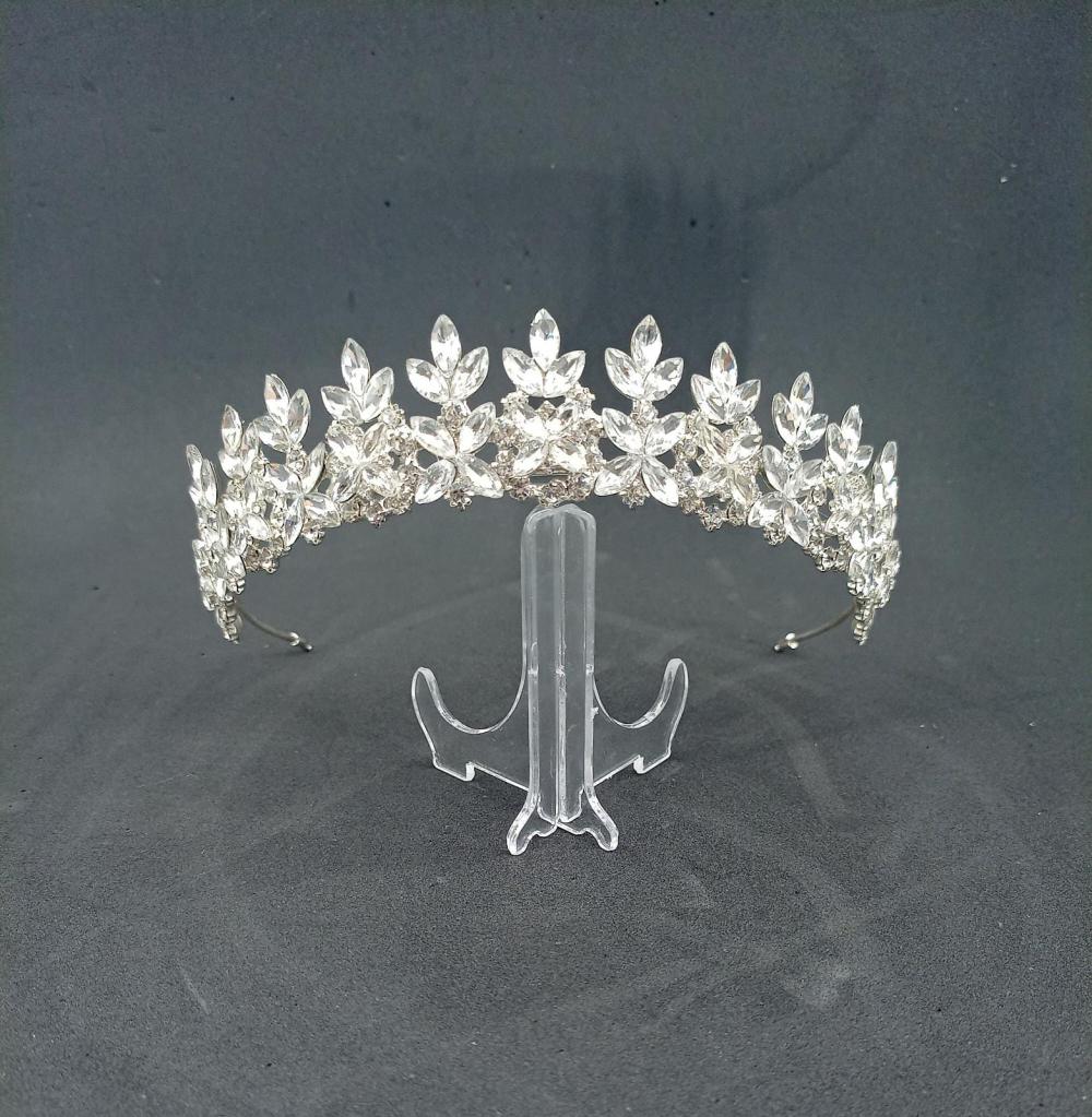 Yaprak Görünümlü Kristallerle Şekillendirilmiş Gelin Tacı