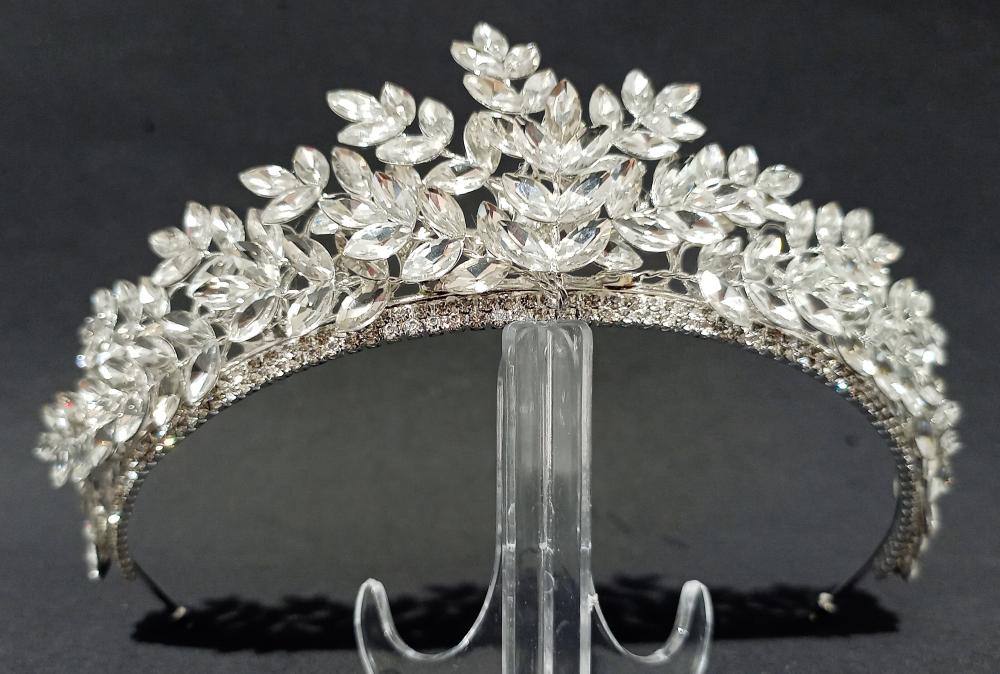 Yaprak Görünümlü Zirkon Kaplama Gelin Tacı
