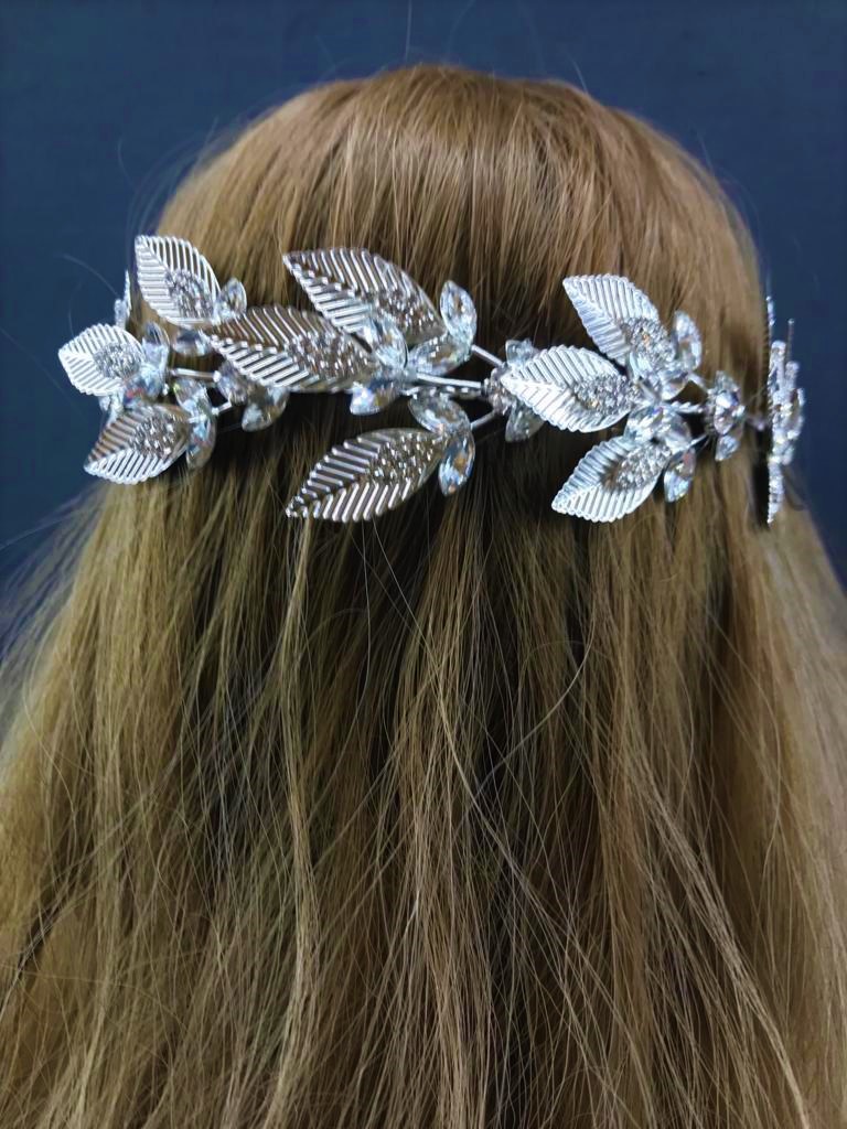 Yaprak Desenli Ve Taşlı Zarif Helen Model Gelin Tacı