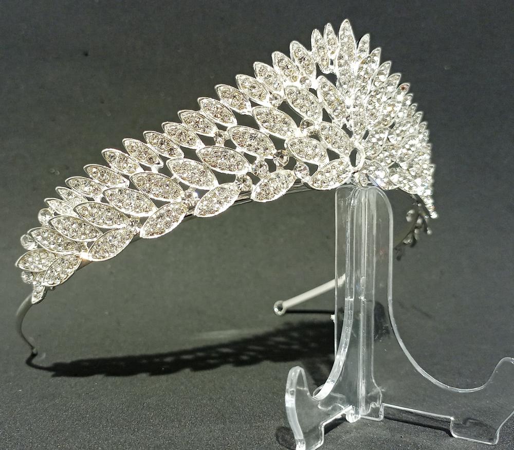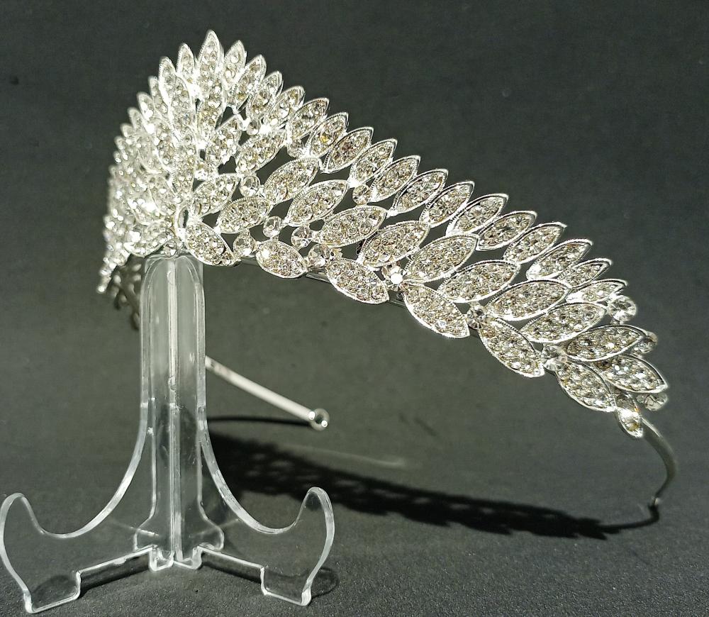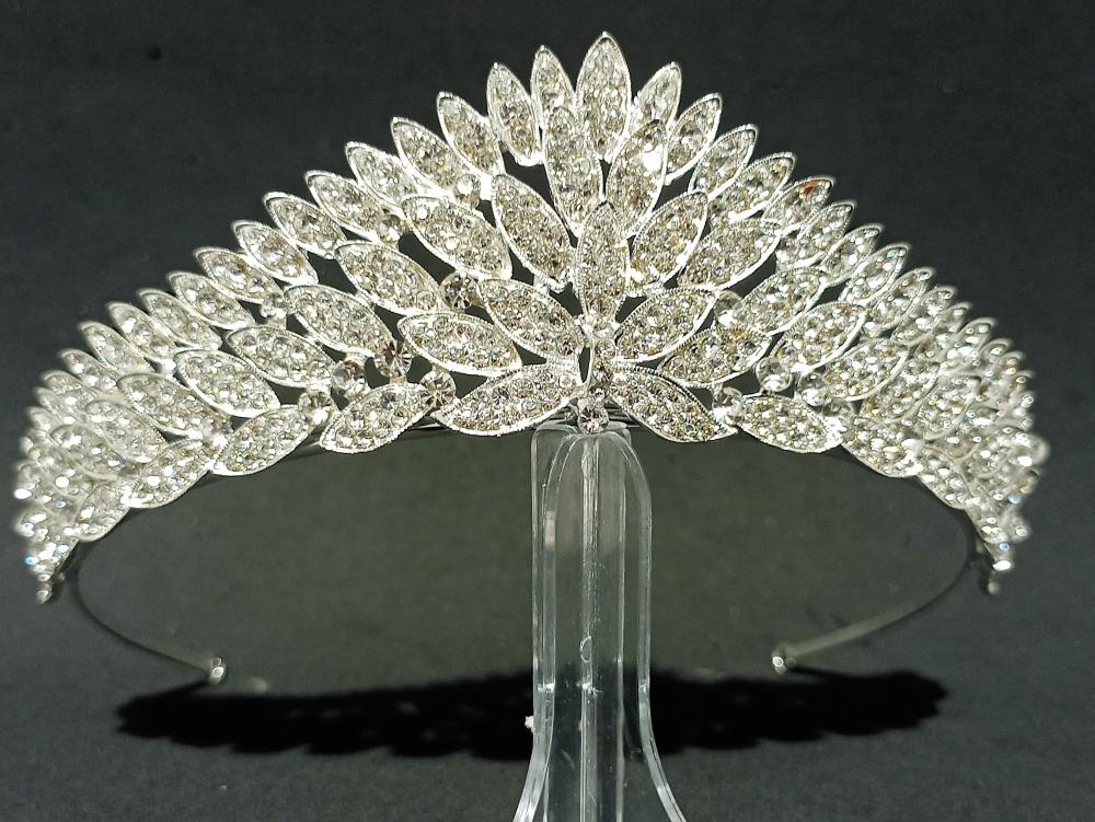 Yaprak Şekilleri Olan Kristal Model Gelin Tacı