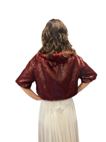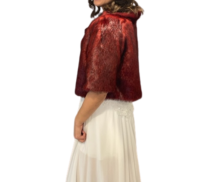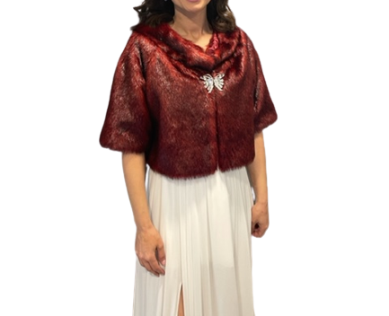 Yarım Kollu Kristal Taş Broşa Sahip Gelin Etol Kürk Bolero