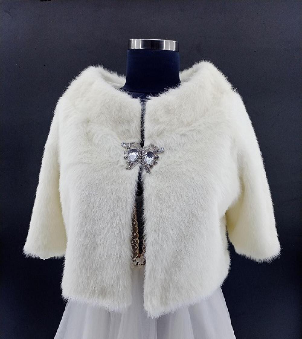 Yarım Kollu Kristal Taş Broşa Sahip Gelin Etol Kürk Bolero