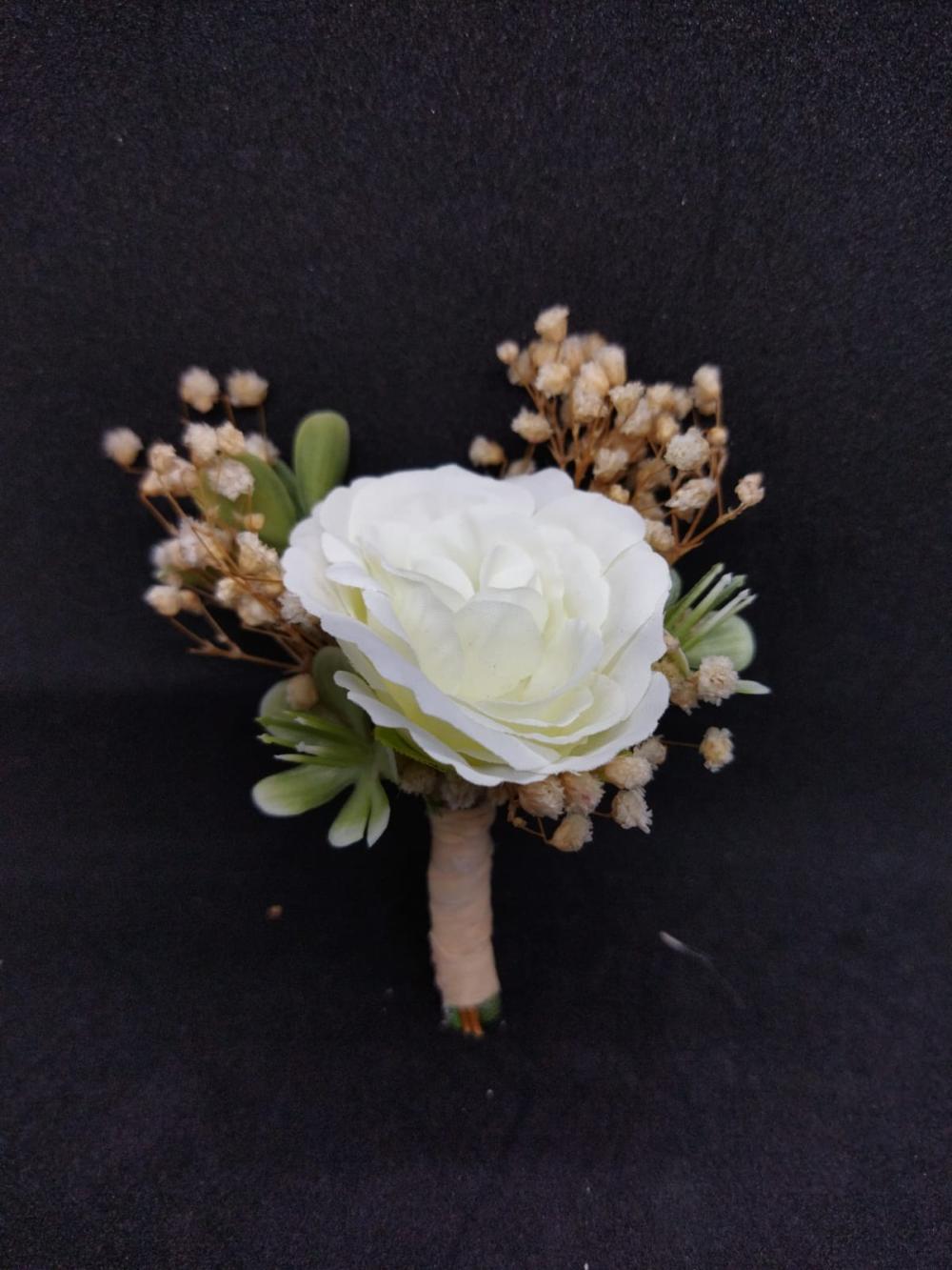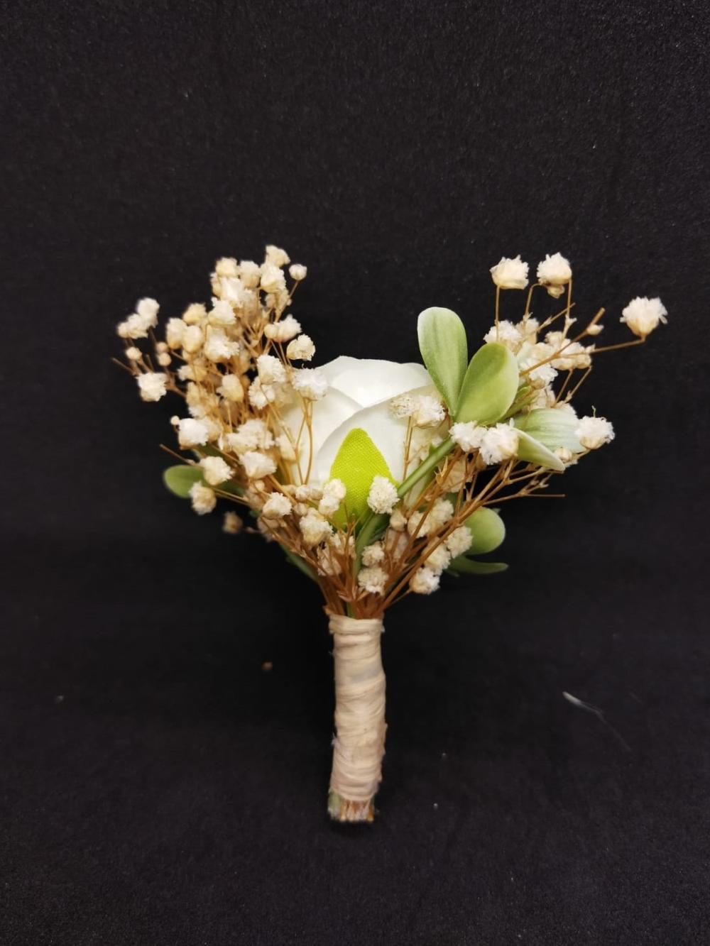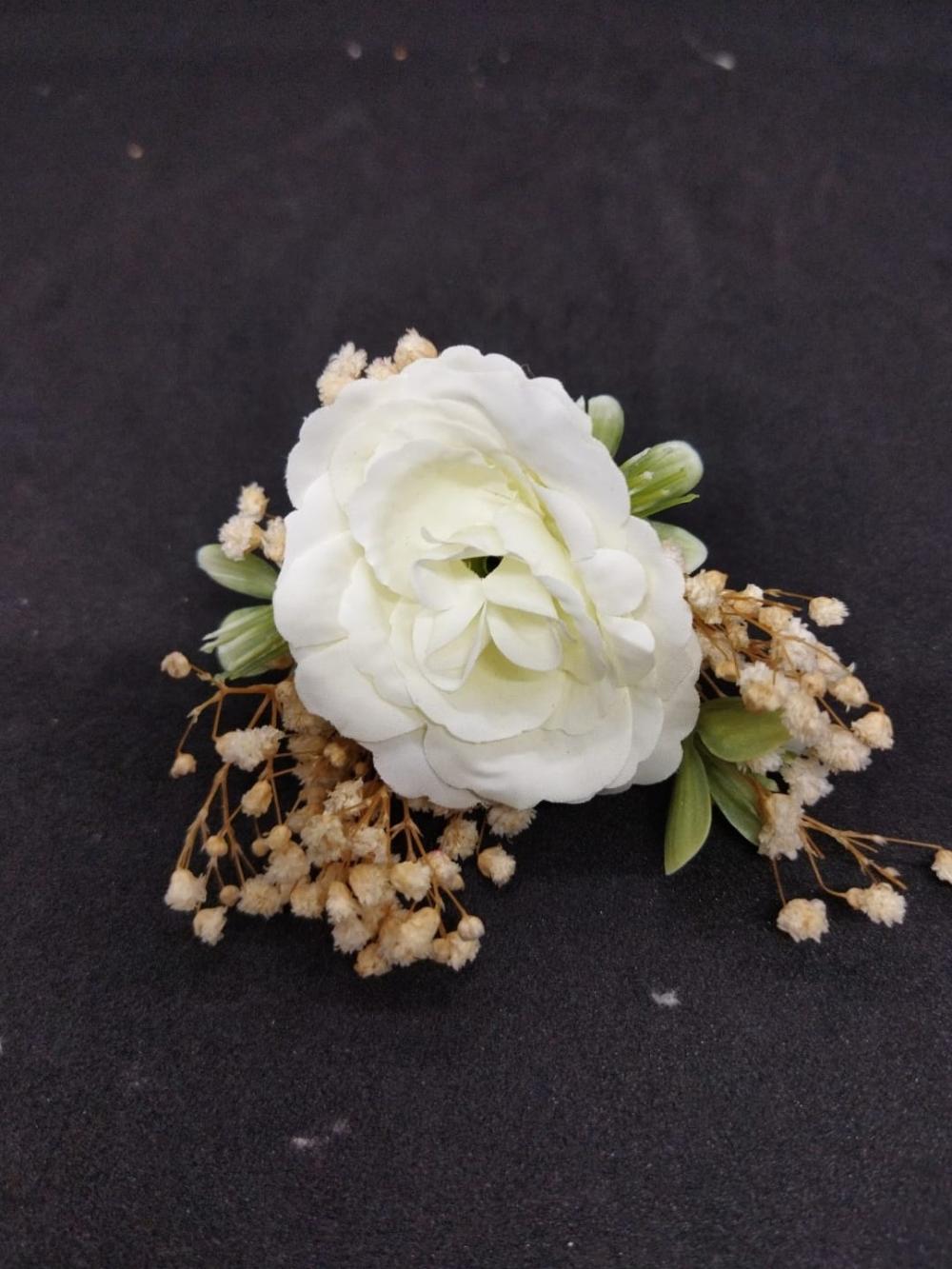 Küçük Çiçek Detayları Olan Beyaz Gala Damat Yaka Çiçeği