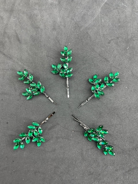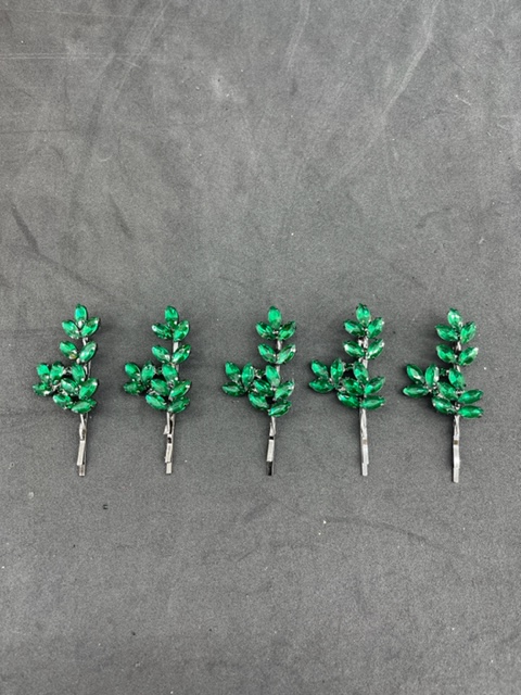 Yeşil Kristallerle Süslenmiş Nişan Kına Gelin Saç Tokası