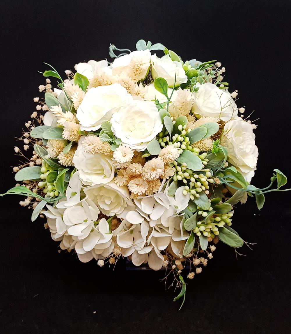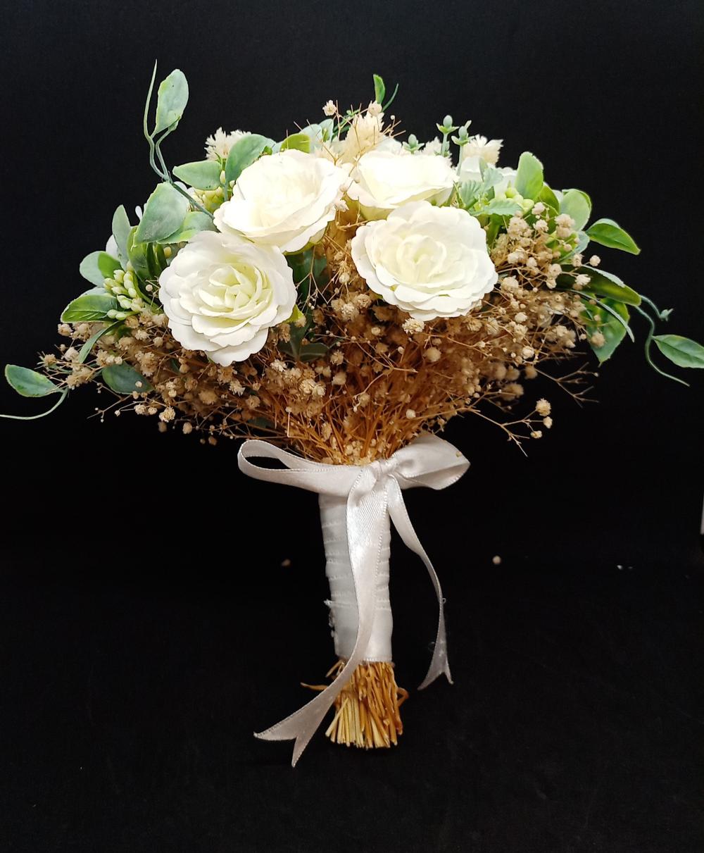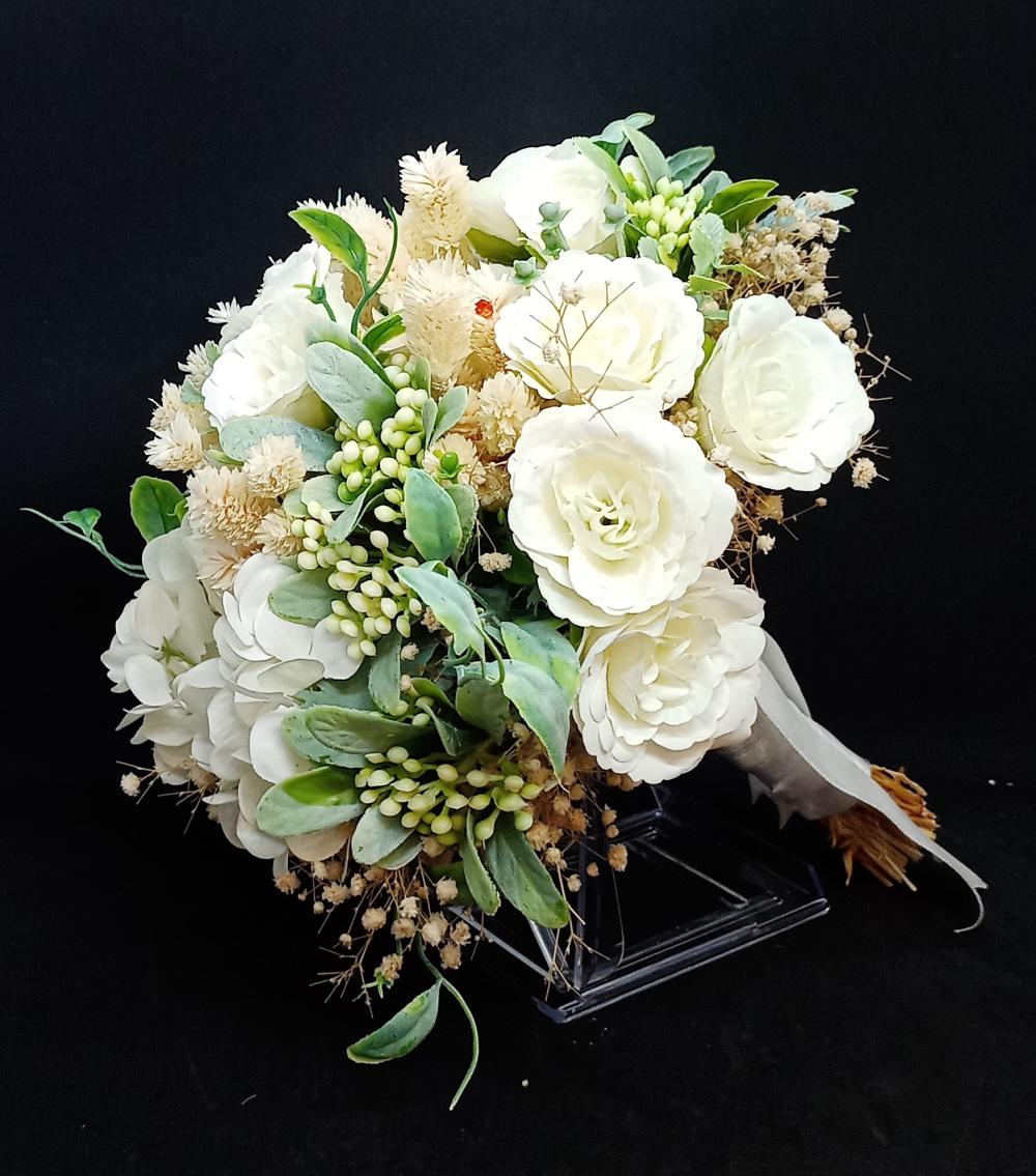 Yeşil Yapraklar Ve Beyaz Çiçeklerden 0luşan Gelin Buketi