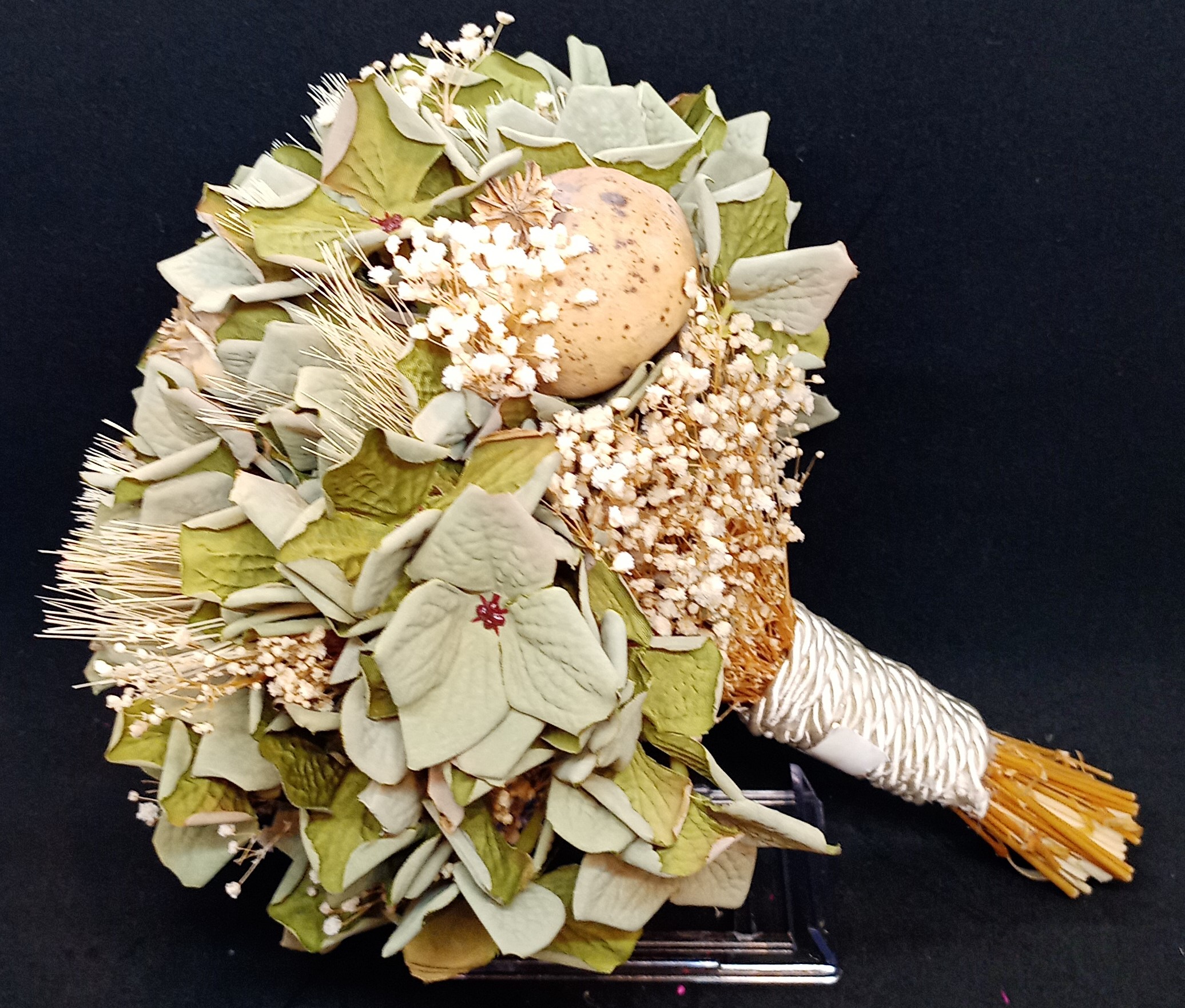 Yeşil Yapraklardan ve Cipsolardan Oluşan Gelin Buketi