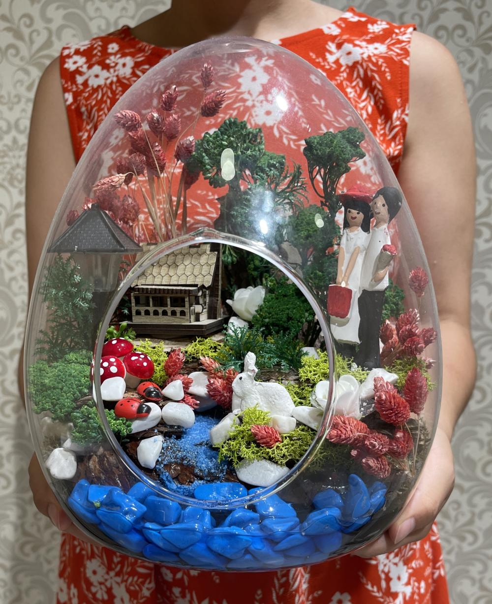 Yumurta Şeklinde Cam Fanuslu Hediyelik Çiçek