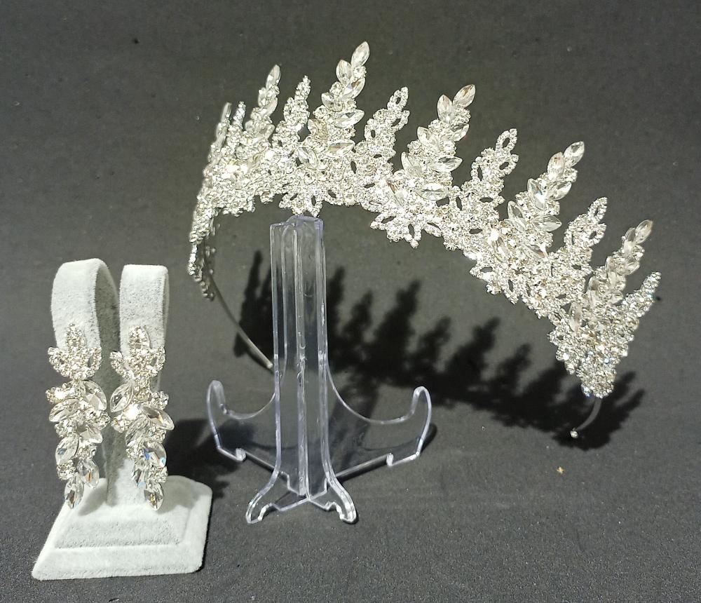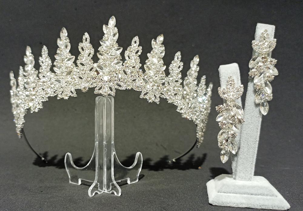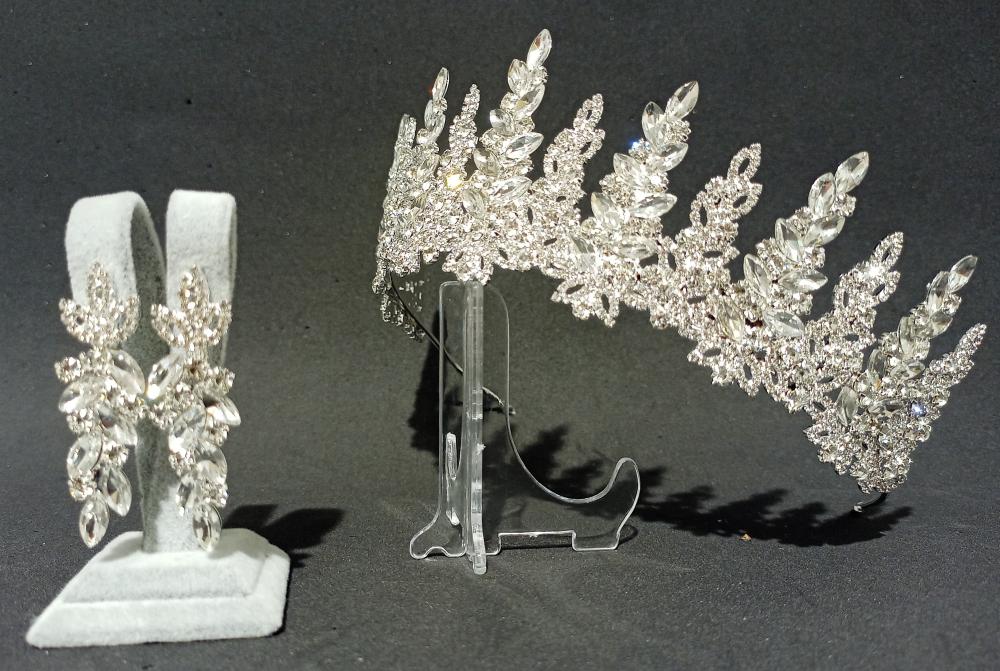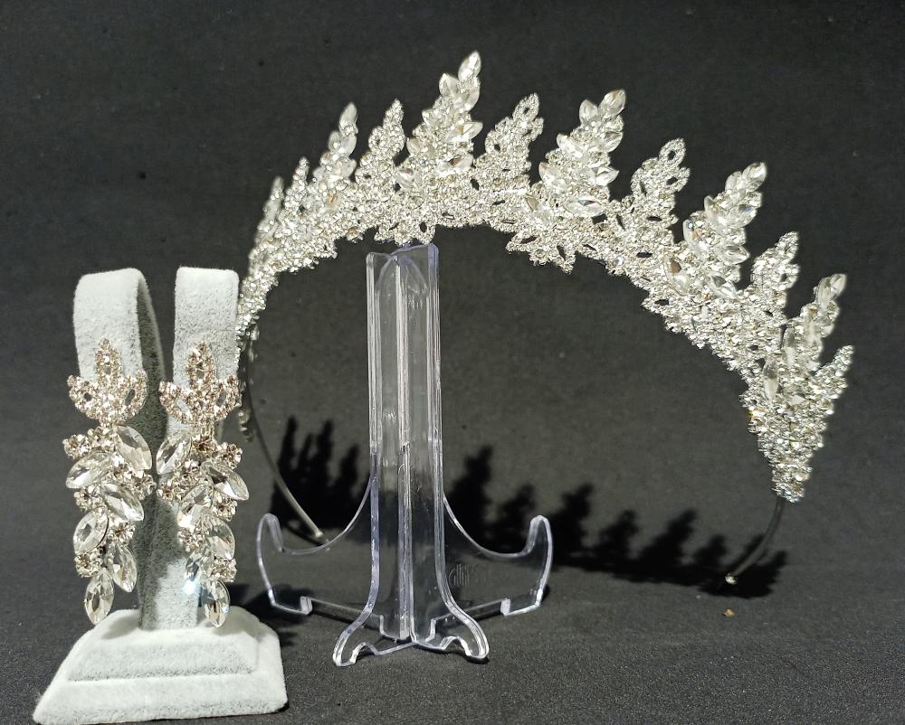 Zirkon Kaplama Prenses Taç Küpe Seti