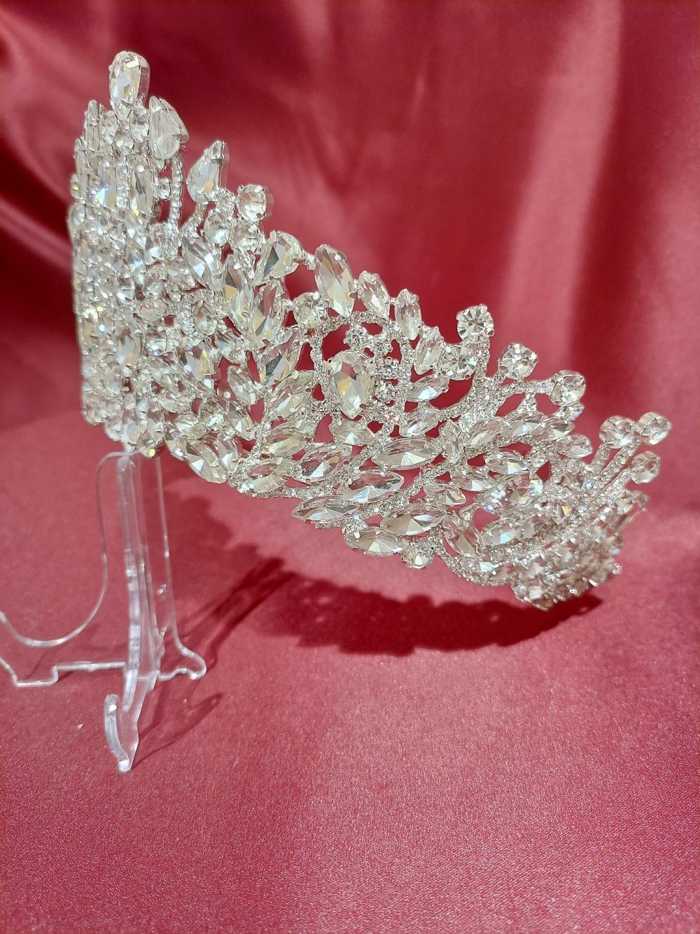Zirkon Taş Gösterişli Yüksek Prenses Model Gelin Tacı.