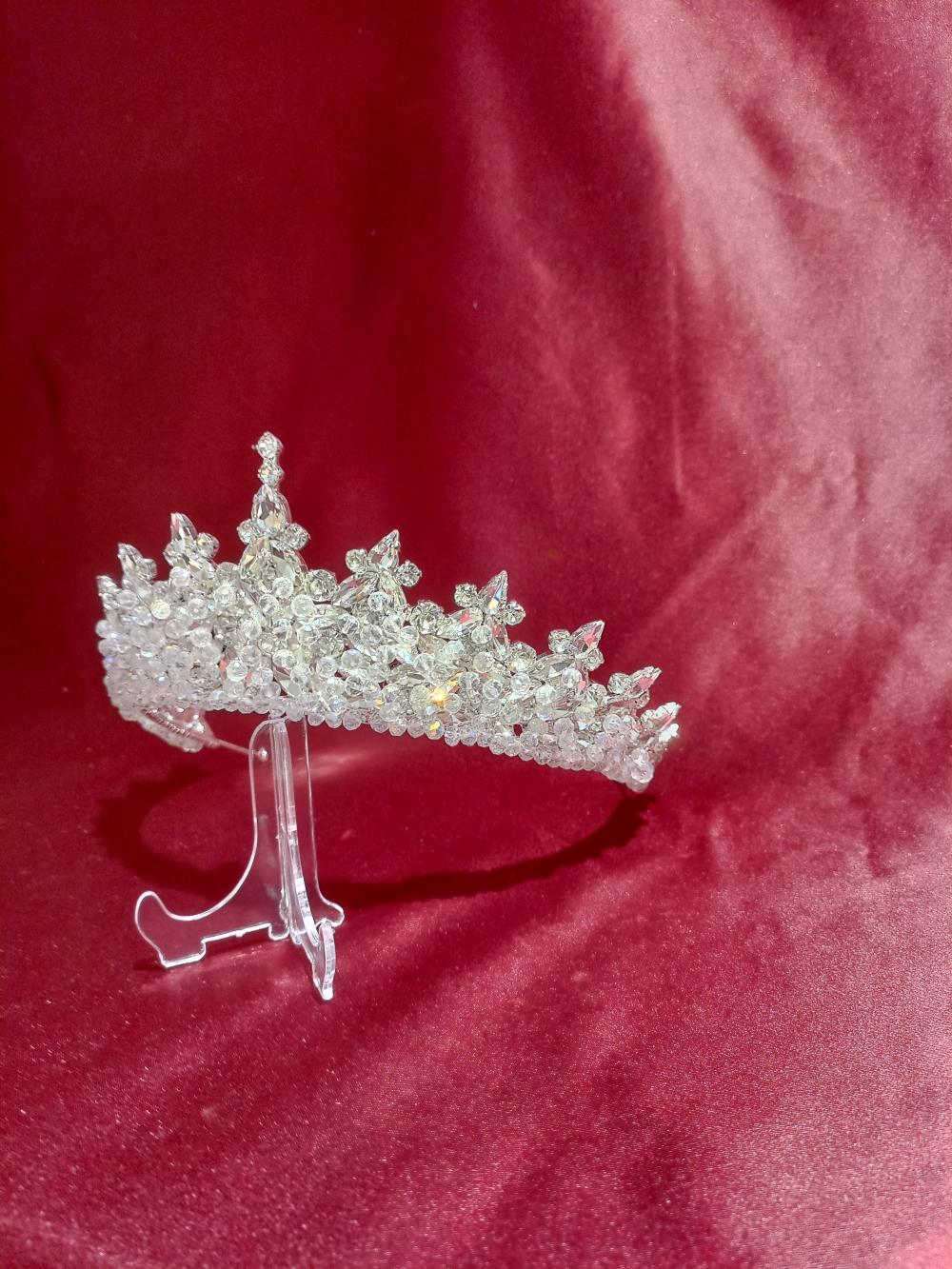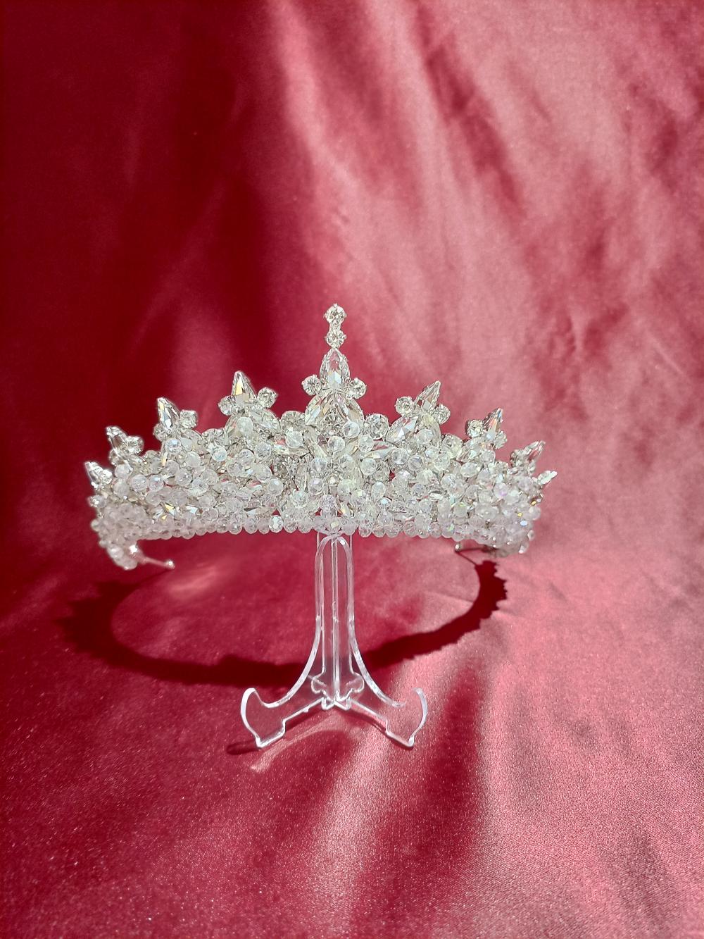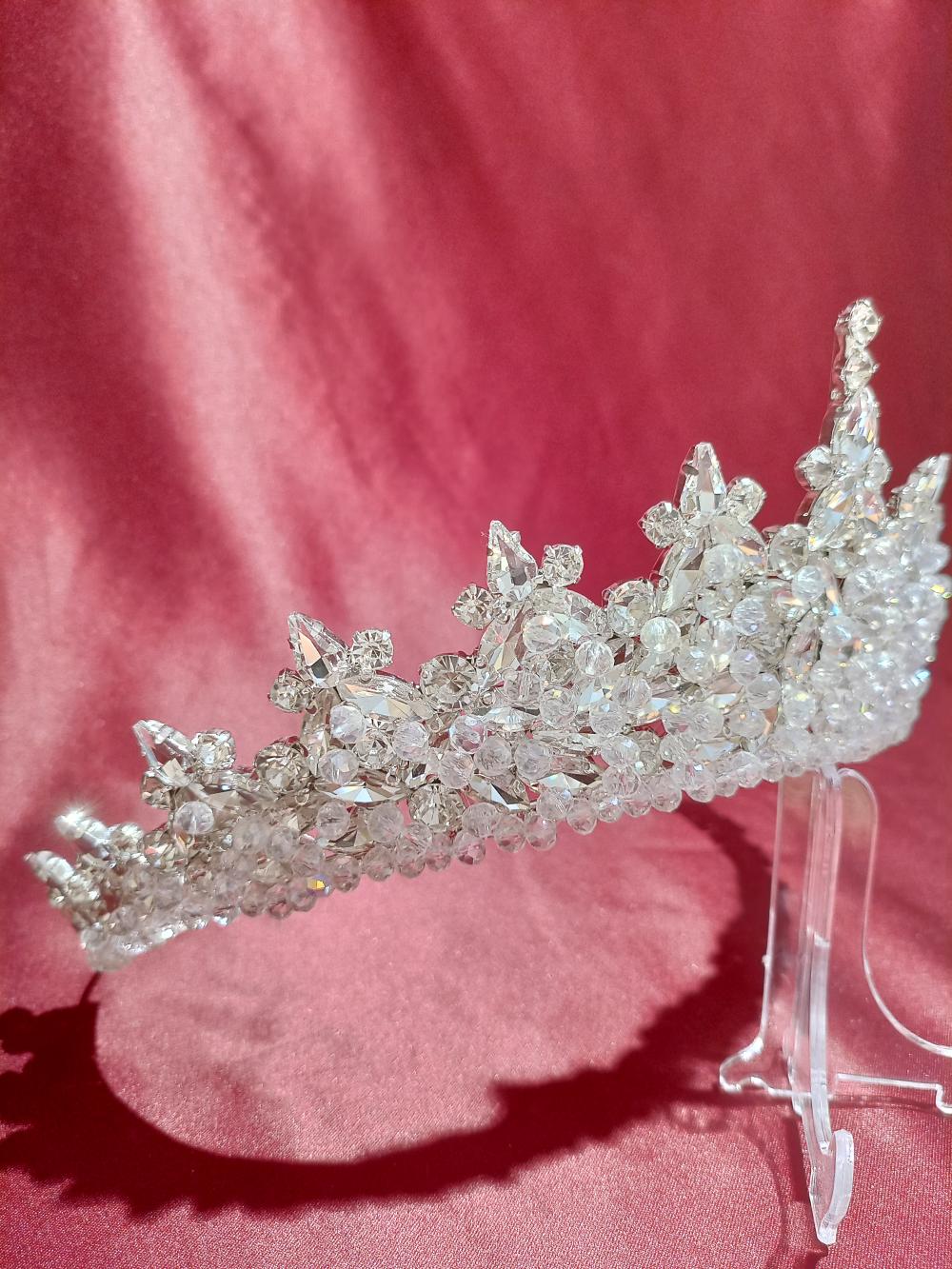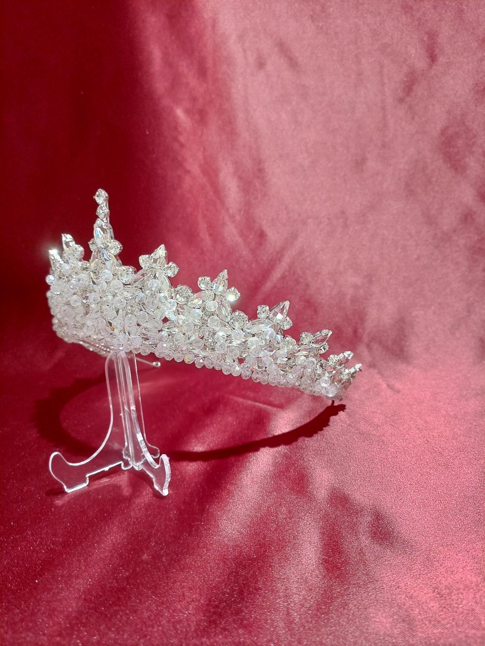 Zirkon Taş Ve Kristal Boncuk İşlemeli Yüksek Boy Prenses Gelin Tacı