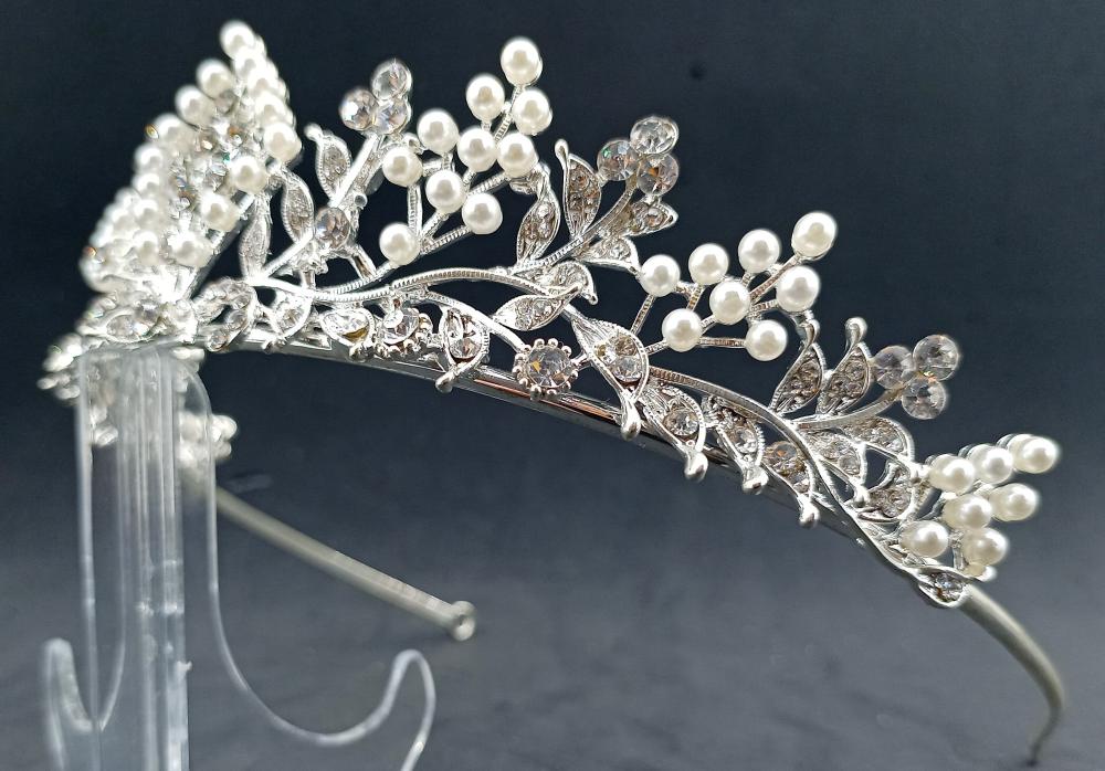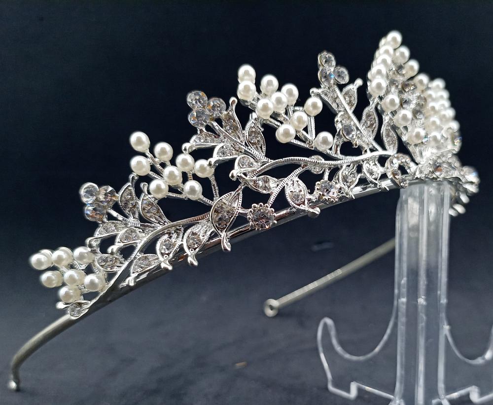 Kristal Taşlardan Oluşan İnci Detaylı Gelin Tacı