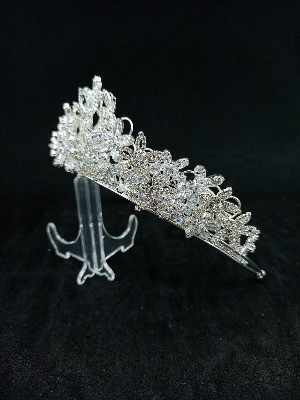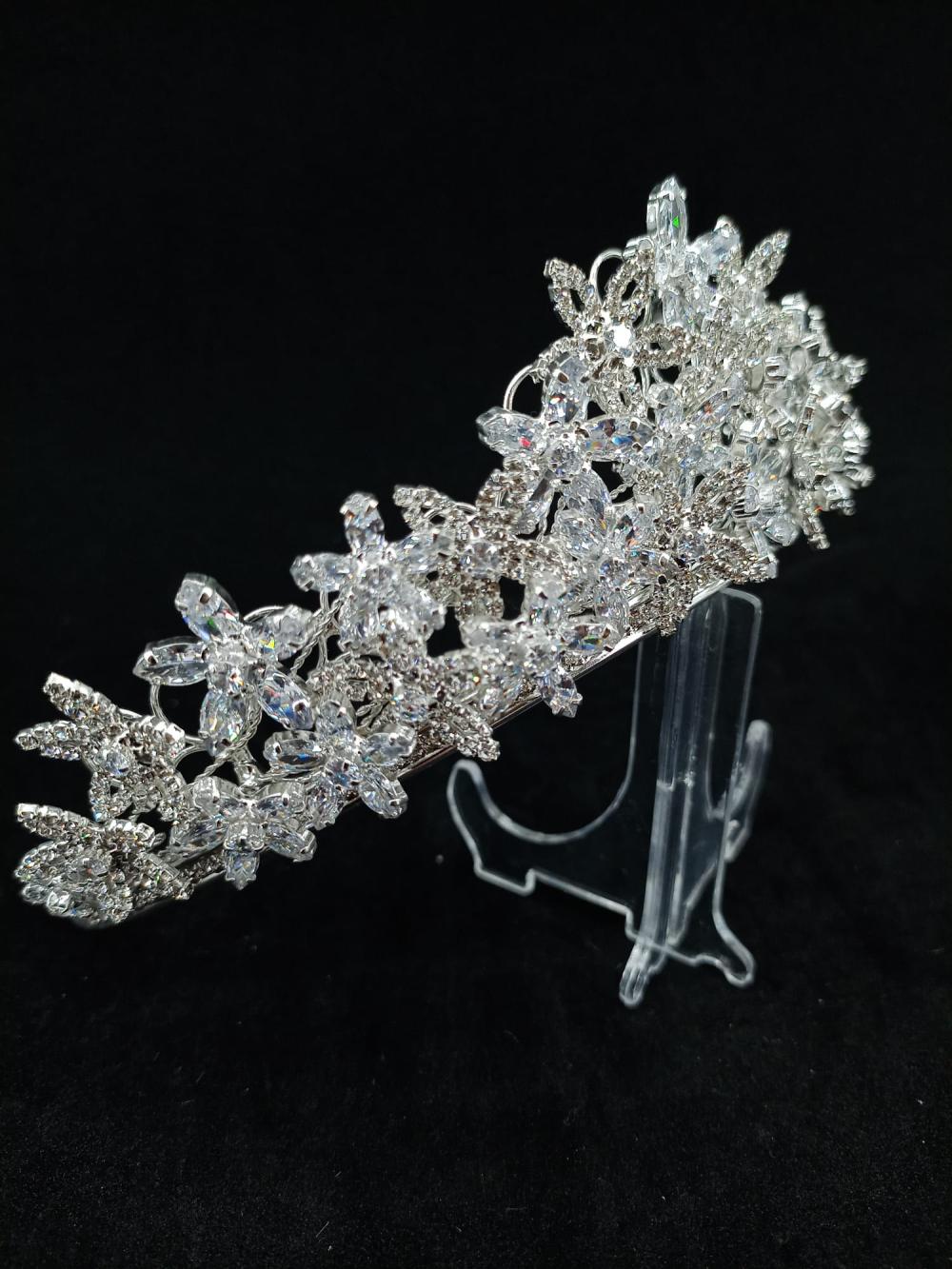 Zirkon Taşlarla Oluşturulmuş Çiçek Detaylarına Sahip Gelin Tacı