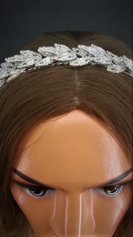 Zirkon Taşlarla Süslenmiş Yaprak Detaylı Helen Model Gelin Tacı