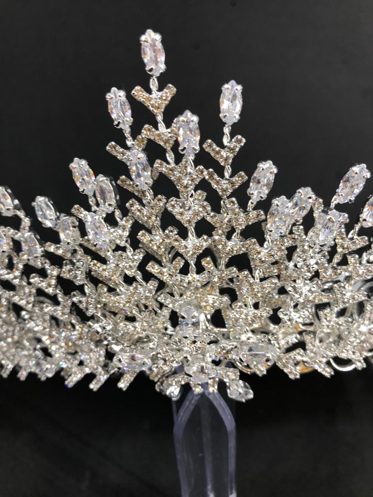 Zirkon Taşlarla Süslenmiş Yaprak Detaylı Prenses Model Gelin Tacı